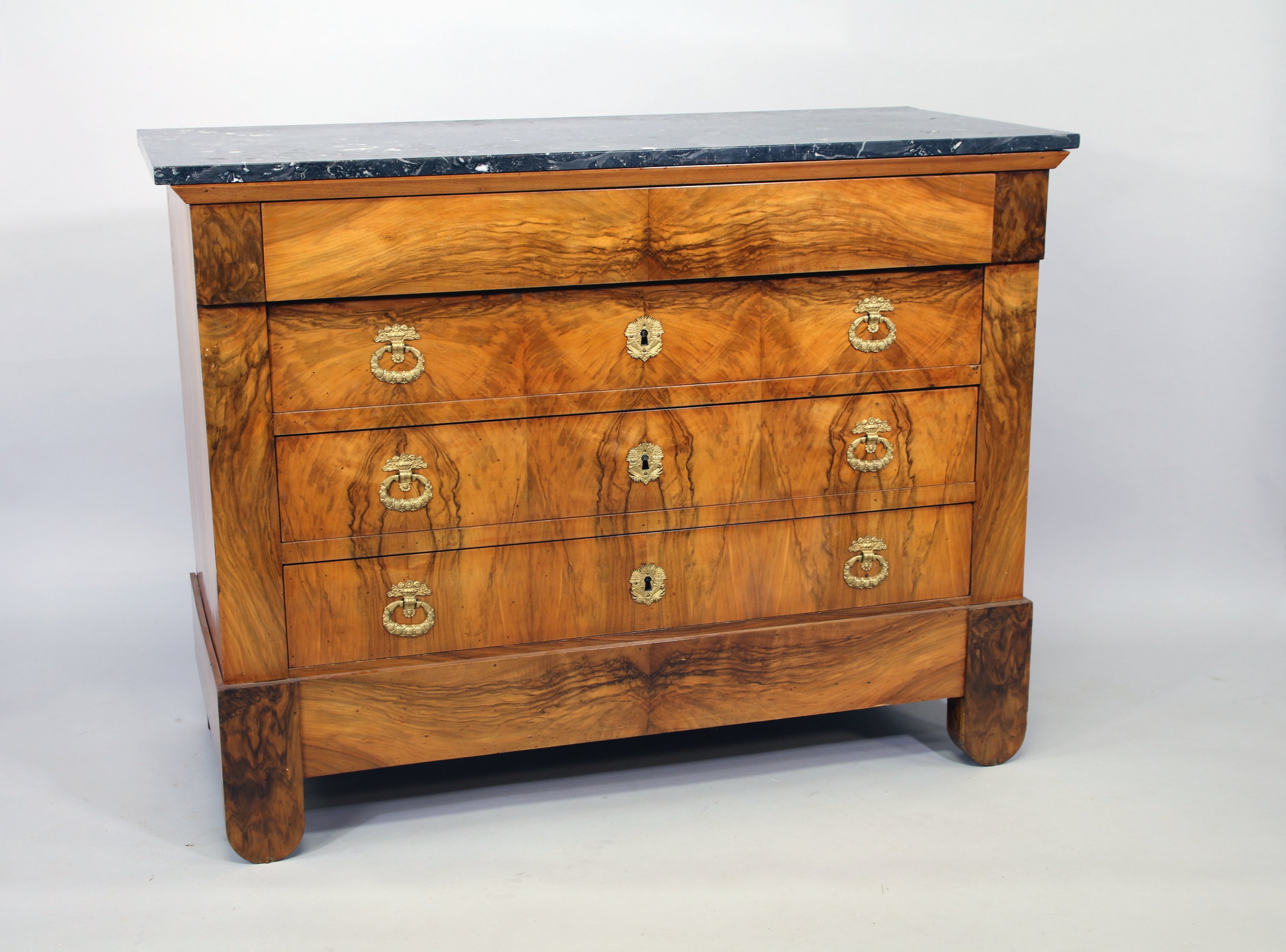 ouvrant à quatre tiroirs dont un dissimulé en ceinture. Ornementation de bronze doré telles : entrées de serrure et poignées de tirages.