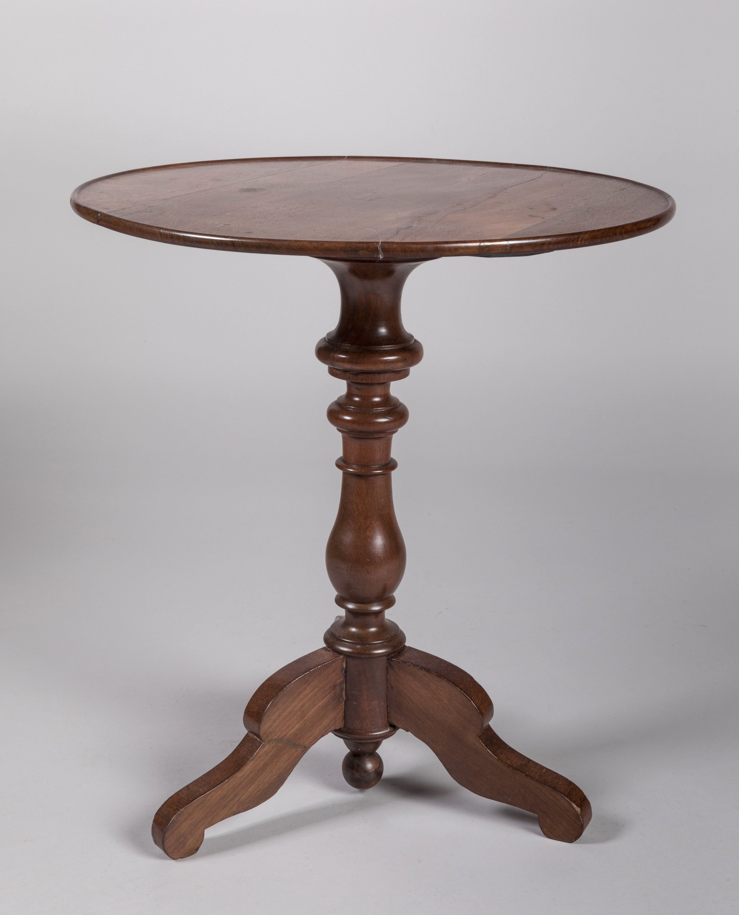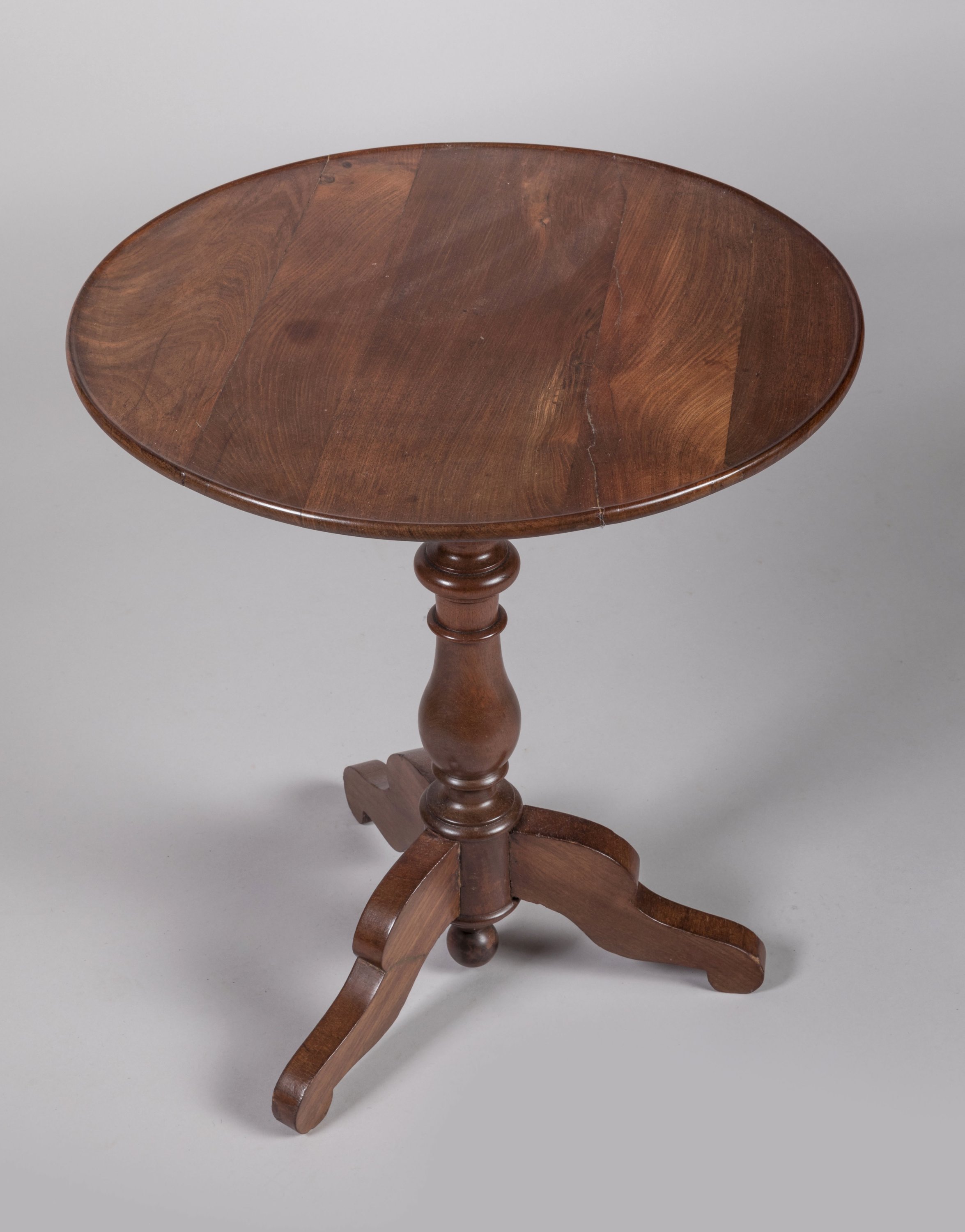 Haut. 94,5 Diam. 49,5 cm (renforts au dos du plateau, fentes).