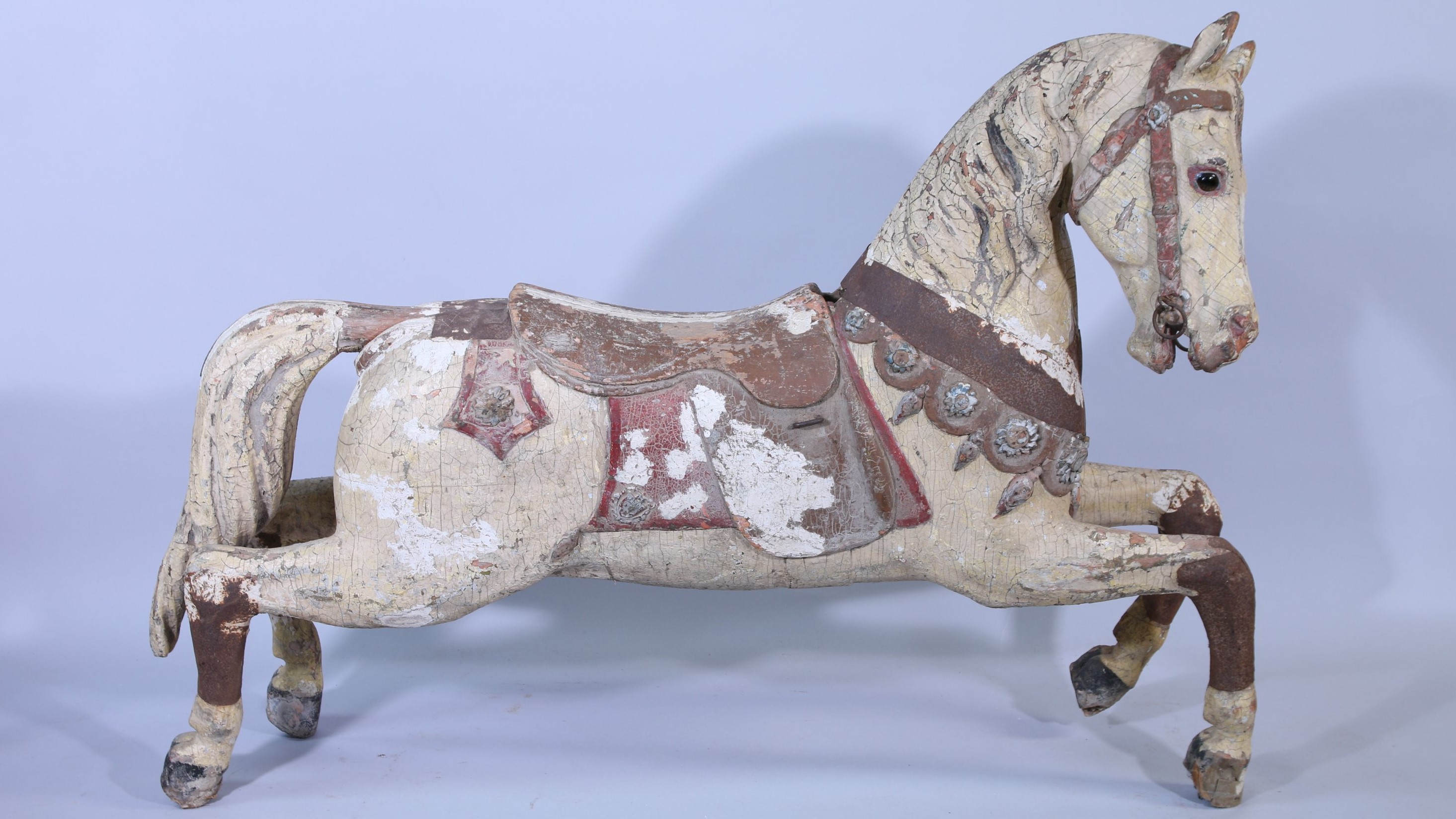 Gustave Bayol (Avignon, 1859 Angers, 1931), débute sa carrière comme sculpteur à Angers et à la demande d'un forain commence à réaliser des sujets de manège. Les animaux domestiques et ceux de la ferme constituent l'essentiel du répertoire de son atelier. Ils ont, a l'instar de notre cheval, la caractéristique d'être réalistes et expressifs.