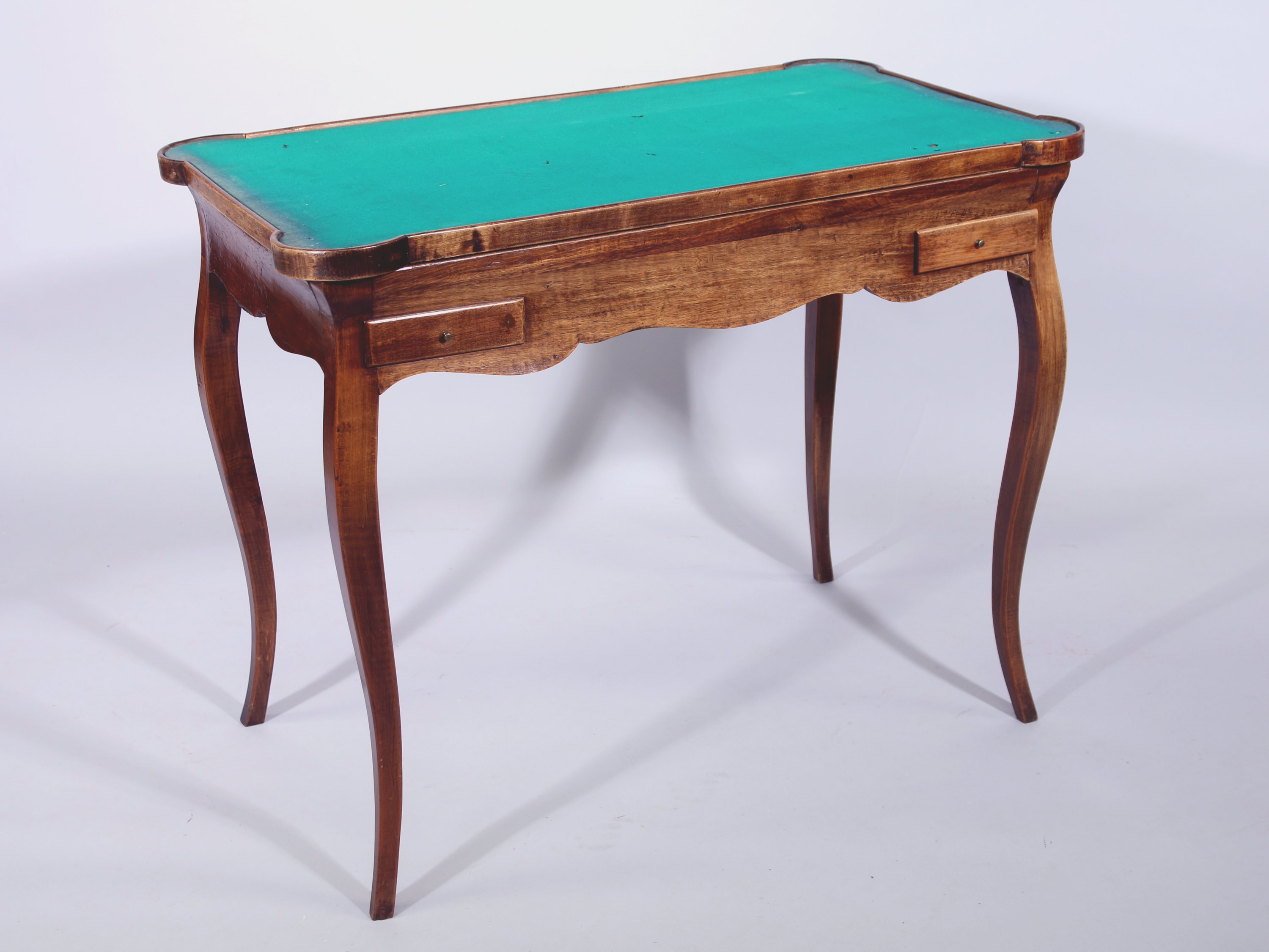 en bois naturel. Le plateau amovible marqueté d'un échiquier dévoile un jeu de tric-trac.