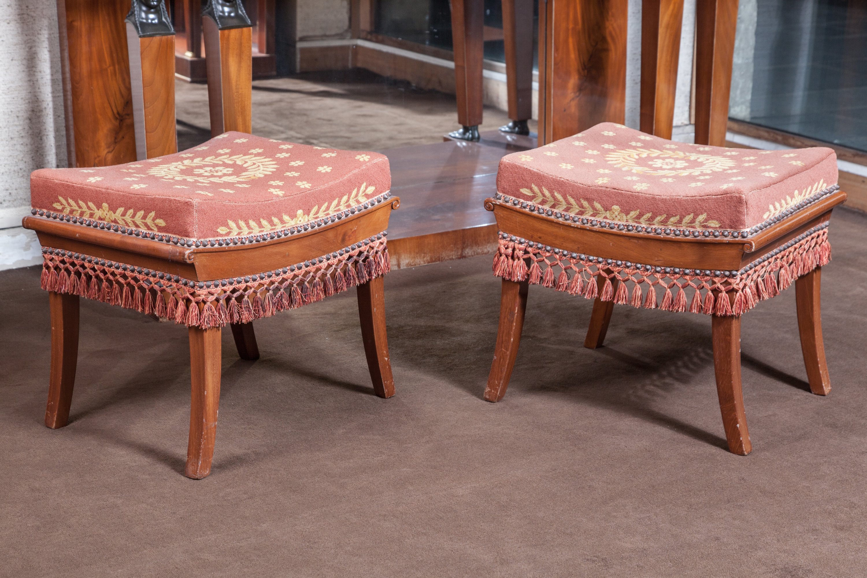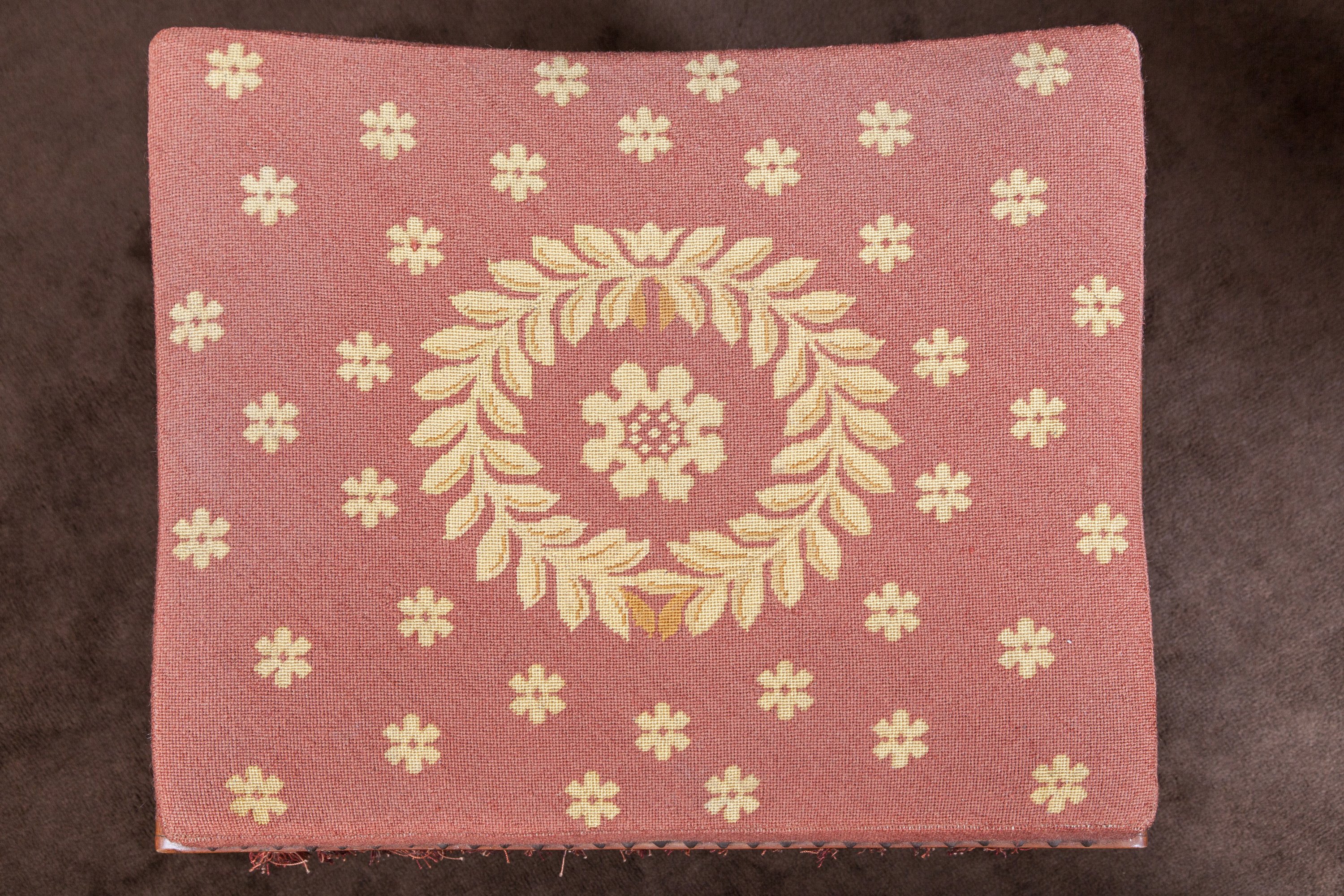 Garnis d'une tapisserie au point à décor de couronne feuillagée et fleurons.
