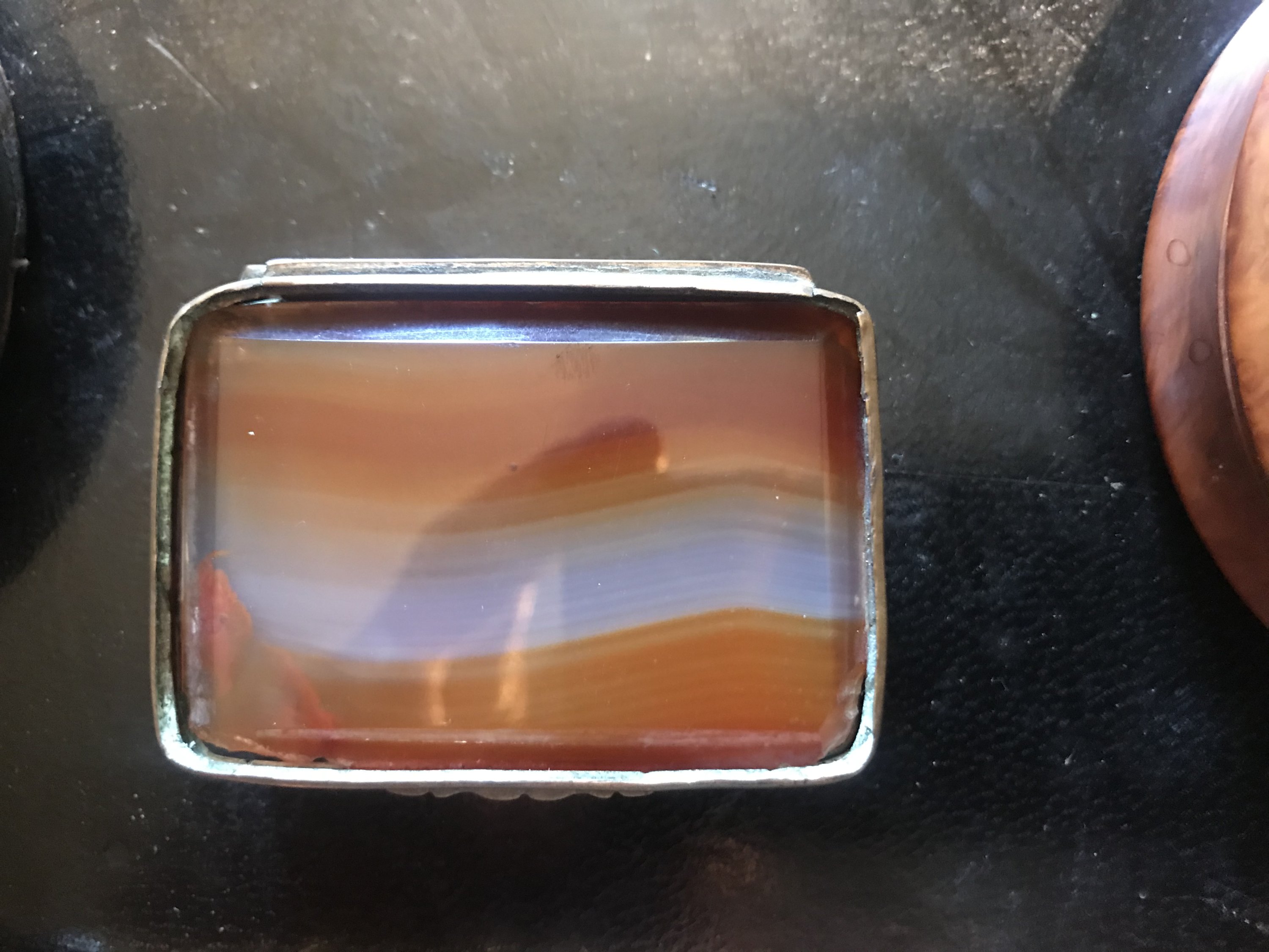 - Boîte à timbres rectangulaire en agate, monture dorée.