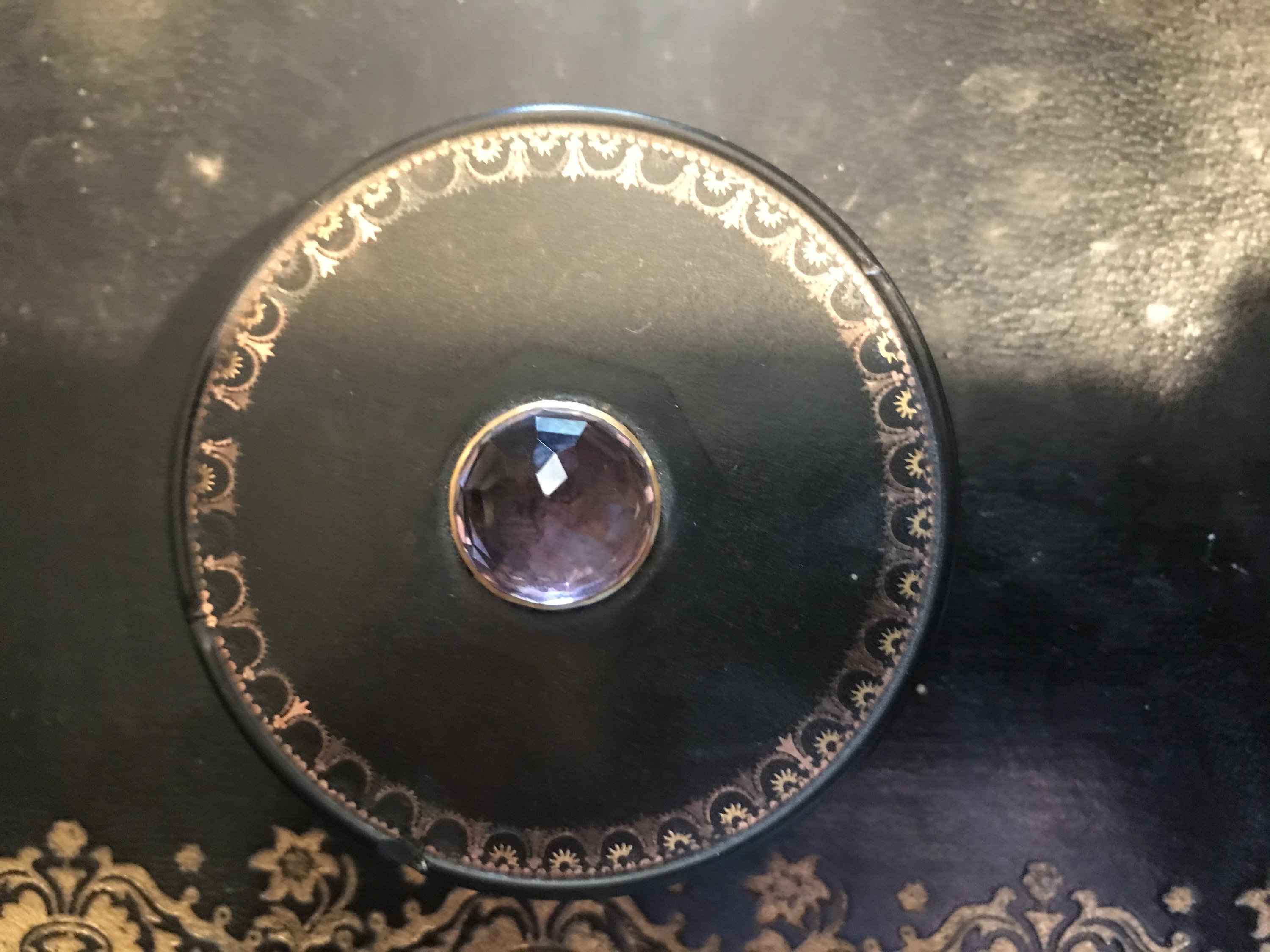- Boîte circulaire en papier mâché, couvercle avec cabochon (accidents).