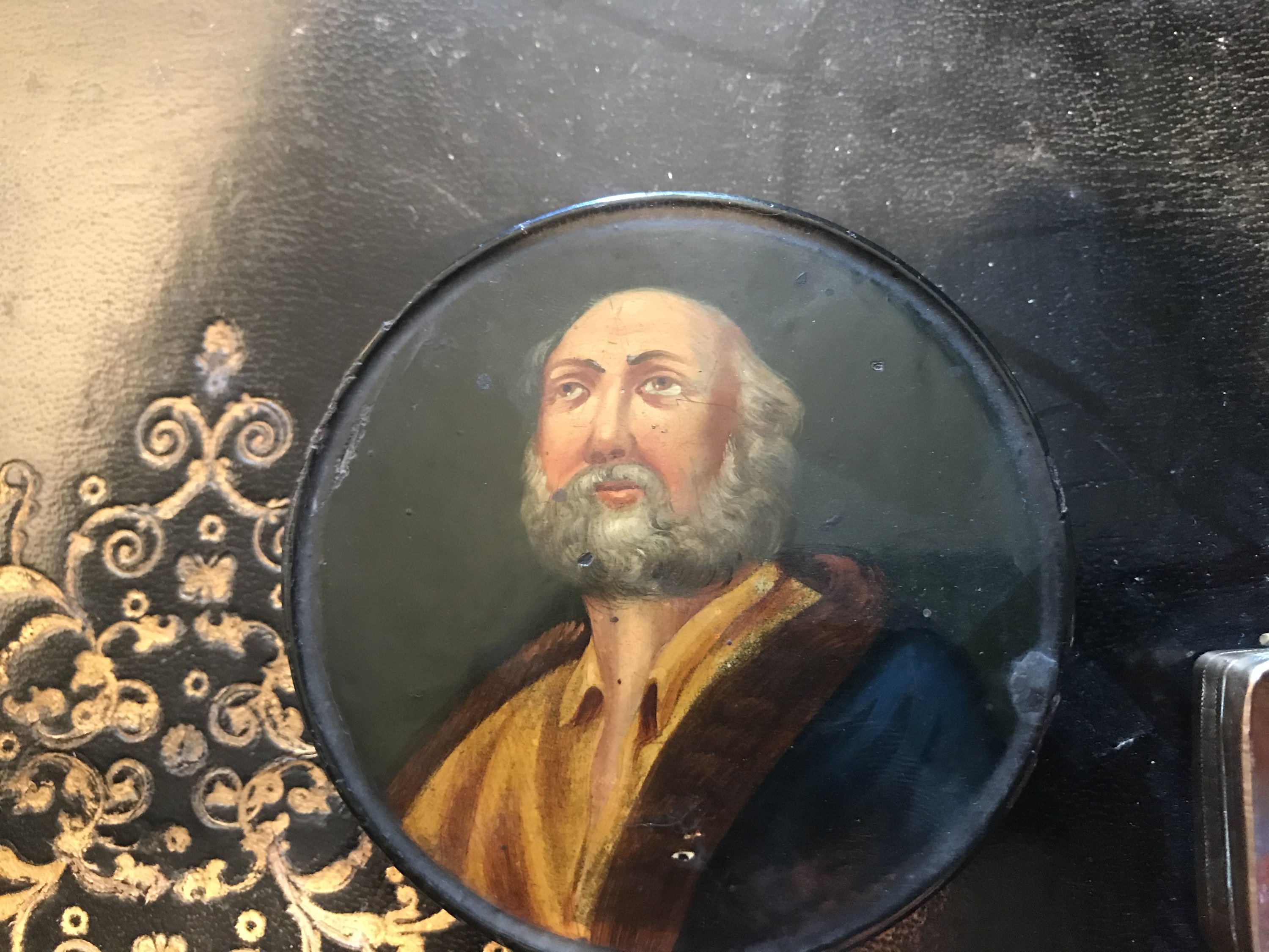 - Boîte circulaire, couvercle orné dune miniature dhomme barbu. XIXe (accidents).