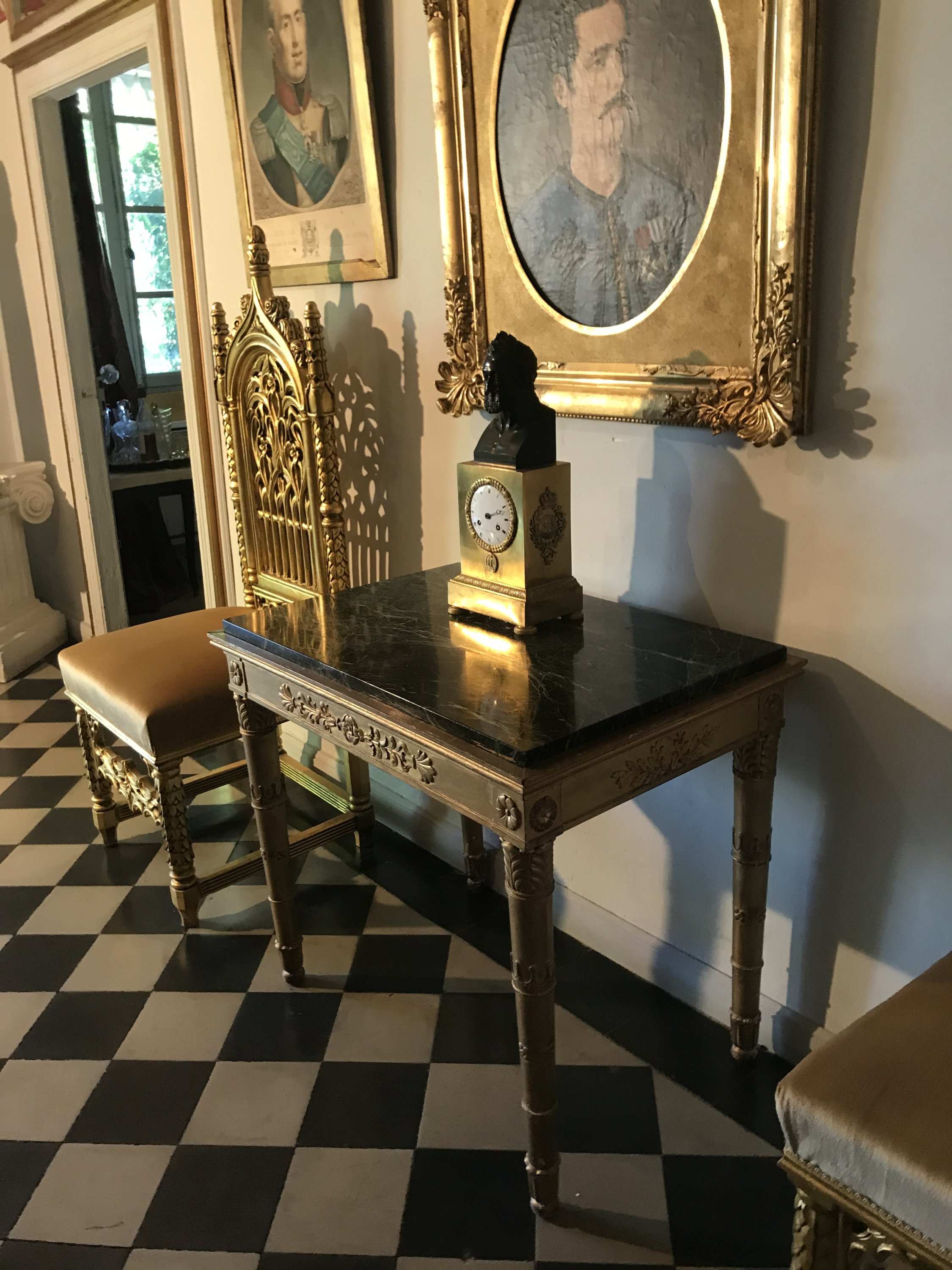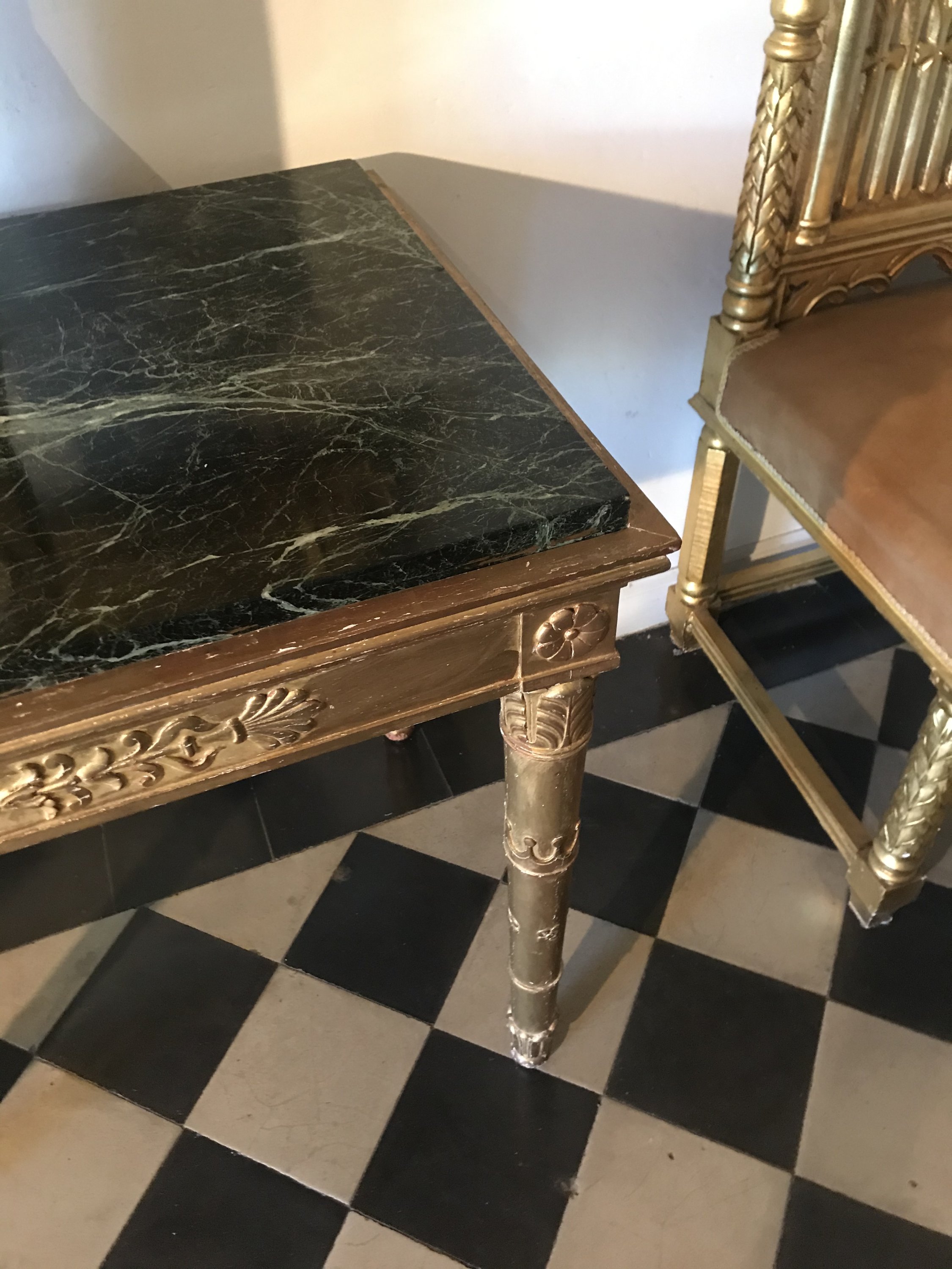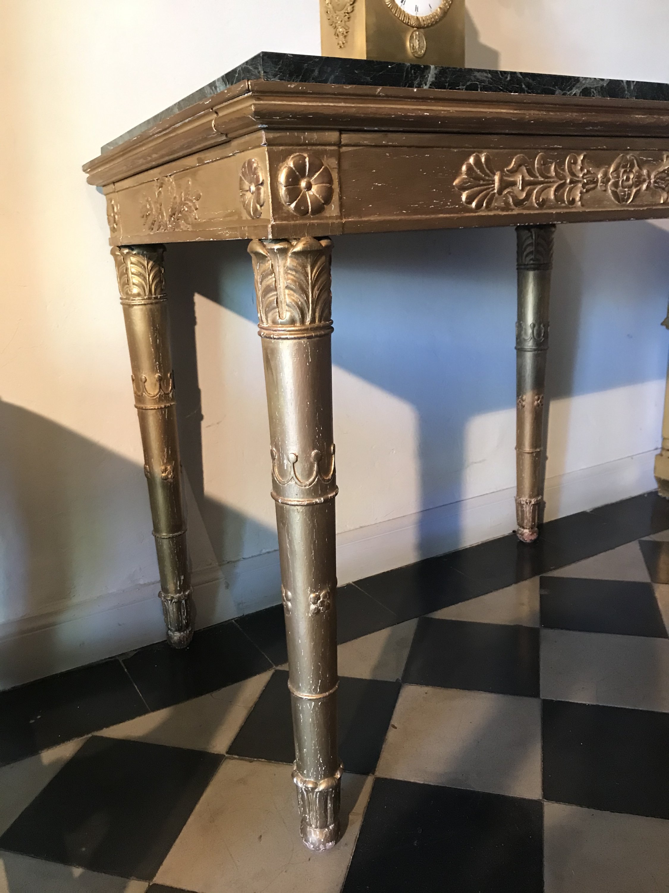 Dessus de marbre vert portor encastré.