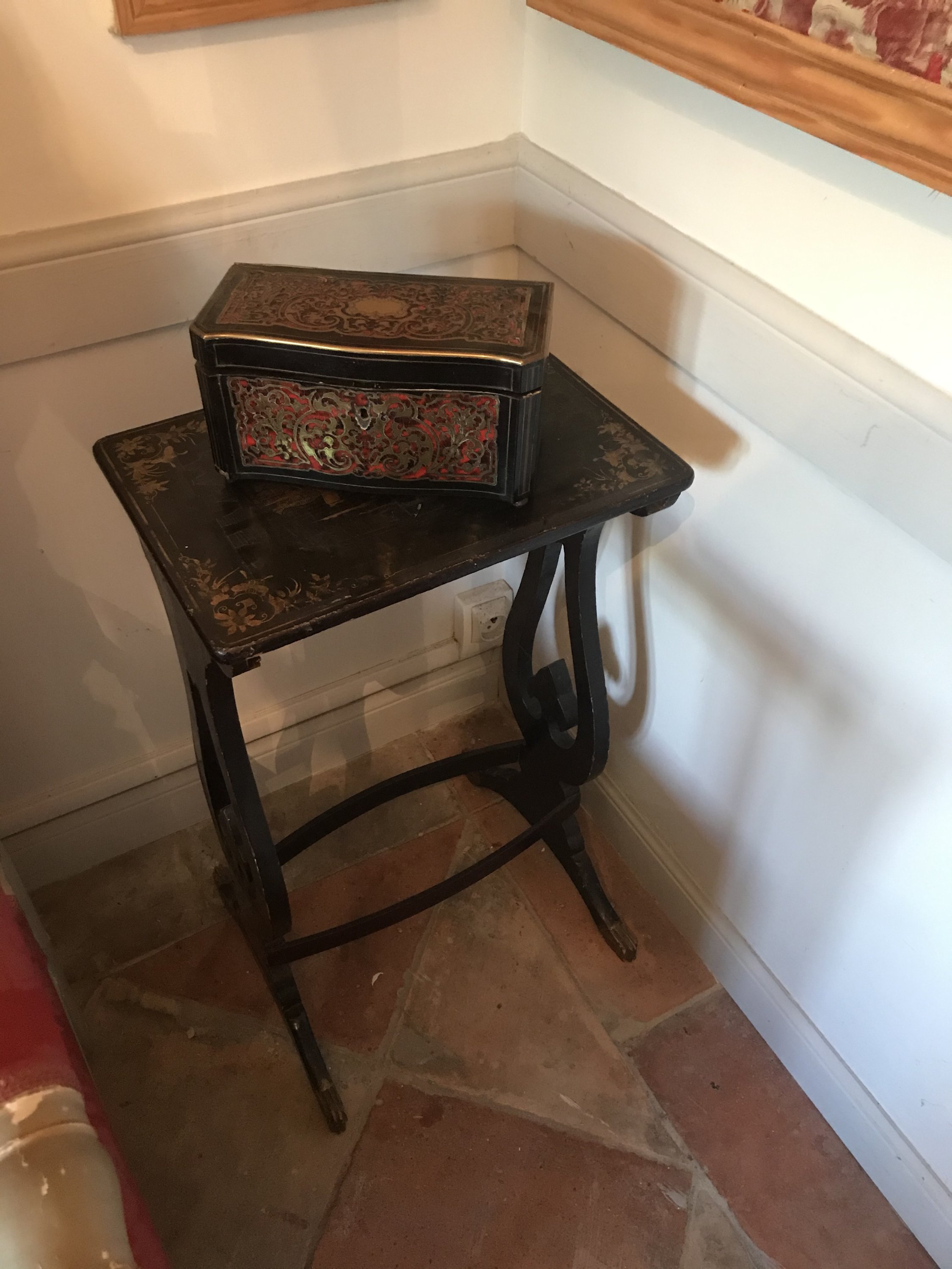 en bois noirci avec une scène orientale dorée, piètement lyre.