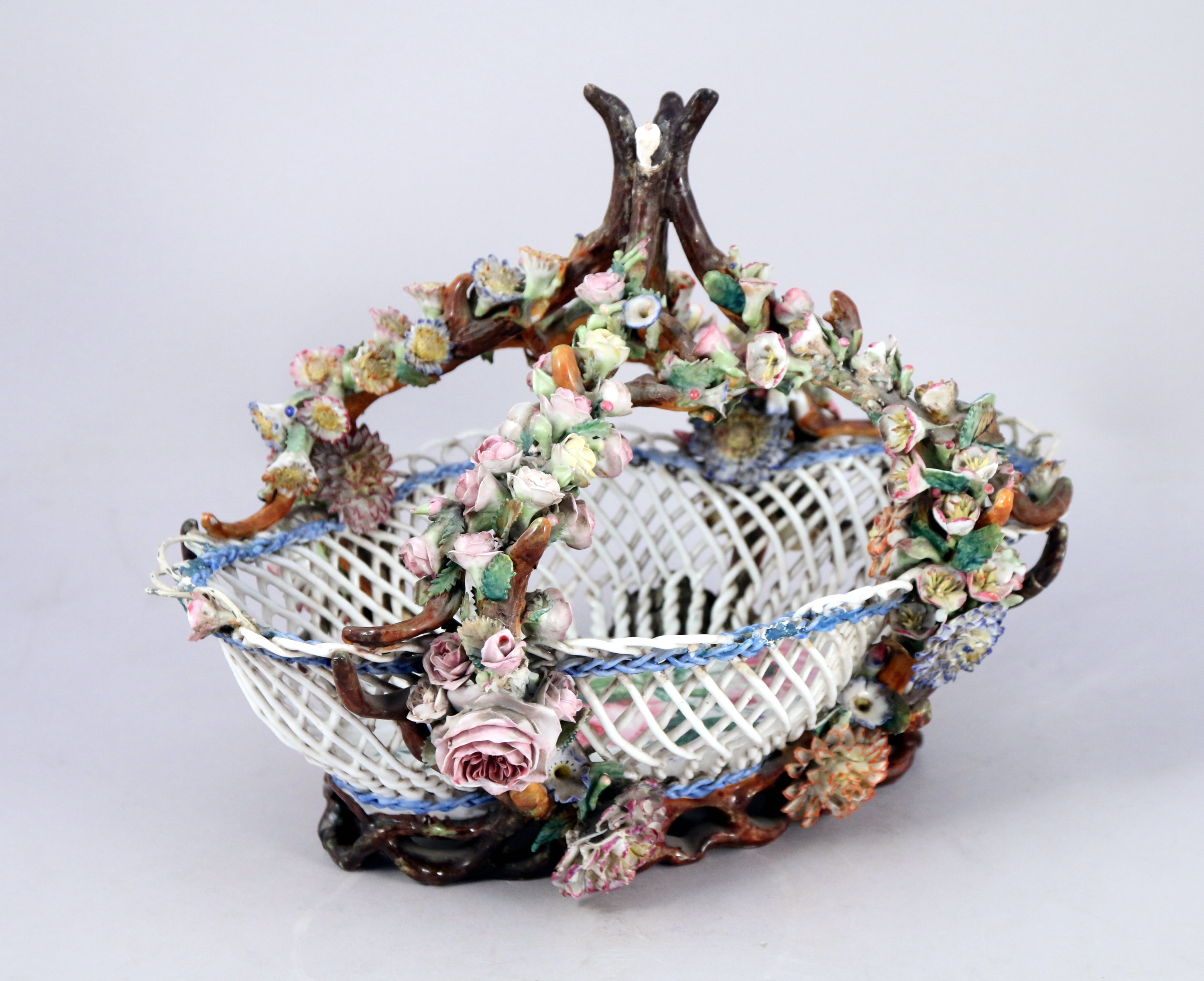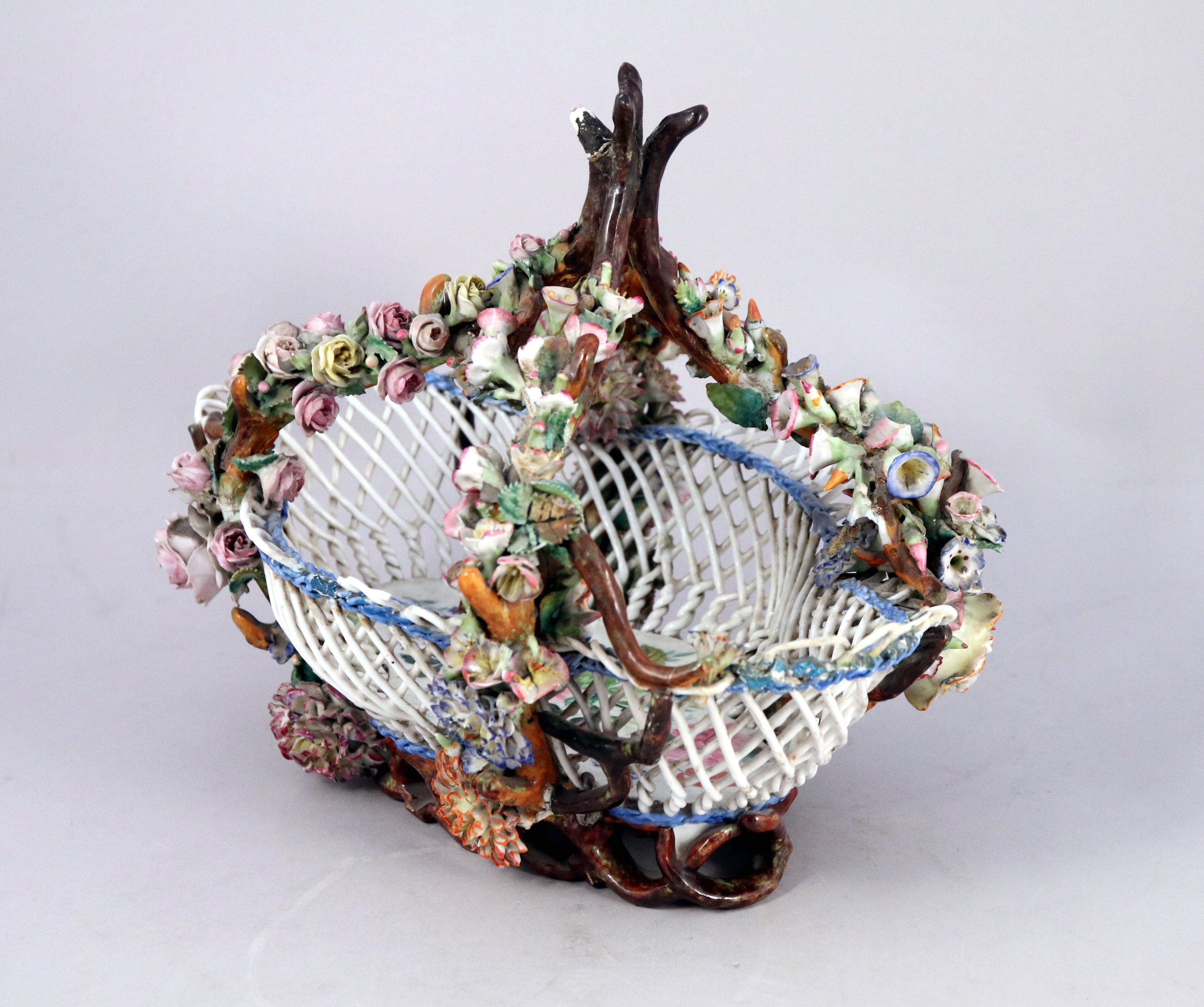 de forme mouvementée ajourée simulant la vannerie, agrémenté de quatre branches fleuries à décor en relief.