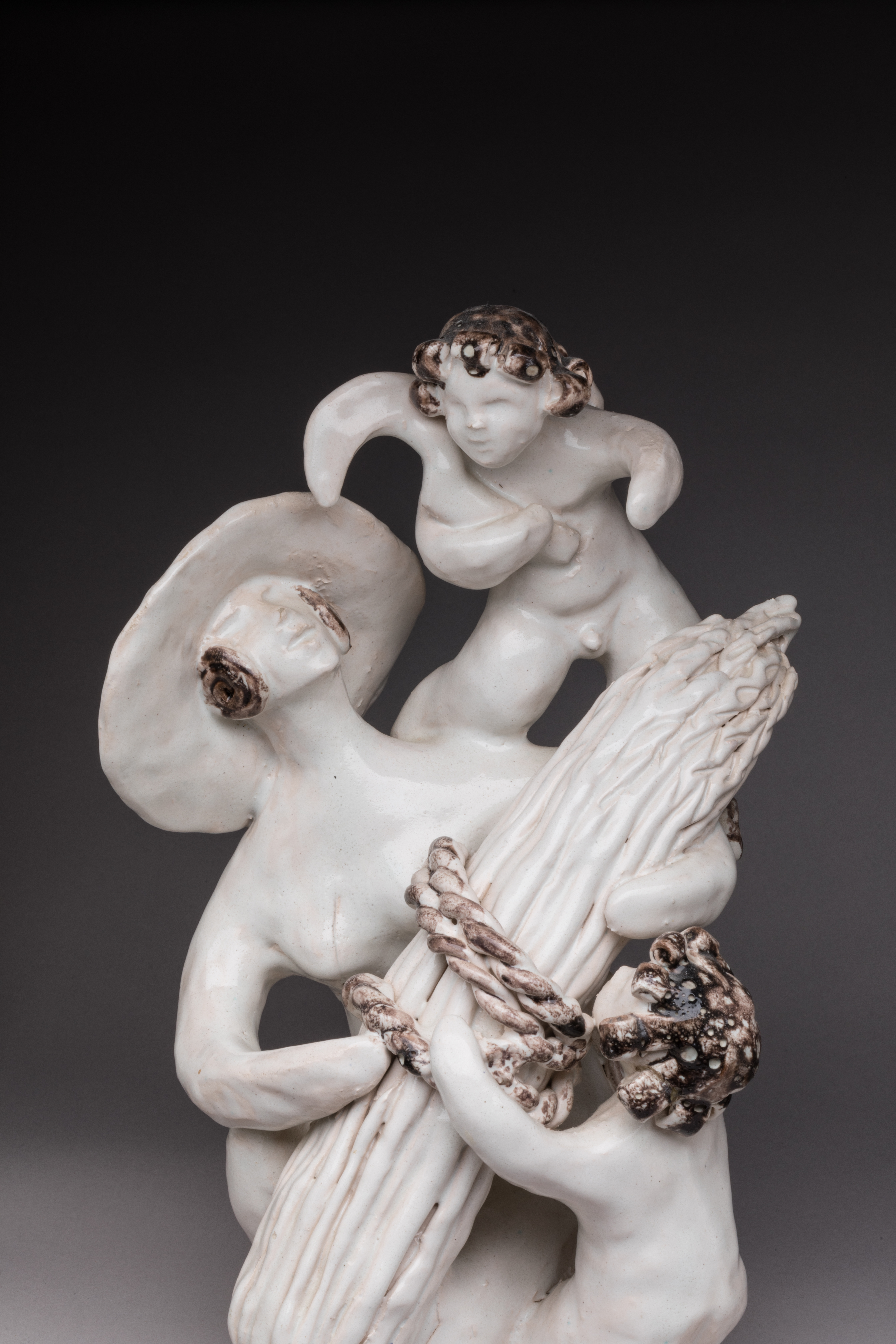 à glaçure blanche, brune et noire représentant les quatre saisons, signés en dessous YH dans un carré.