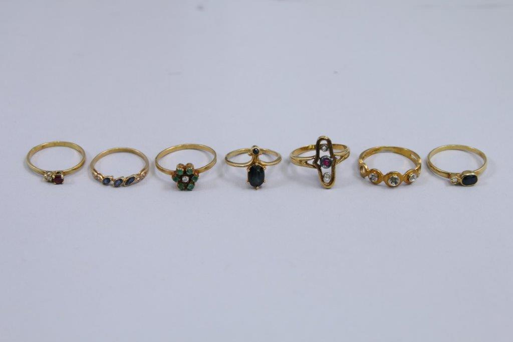 LOT de sept BAGUES en or jaune 750 millièmes ornées...