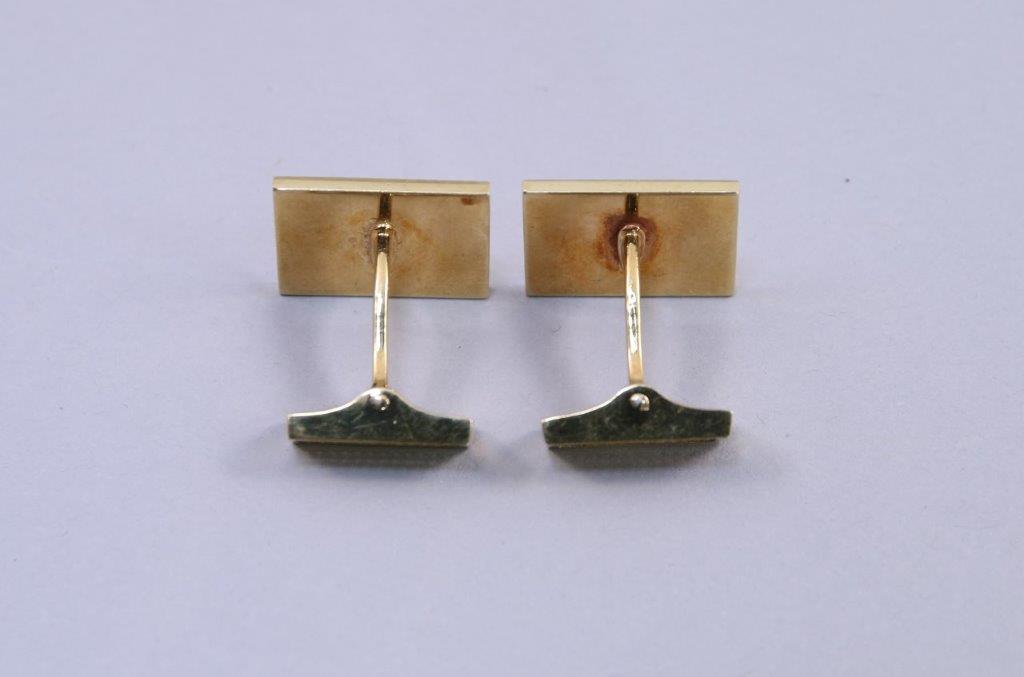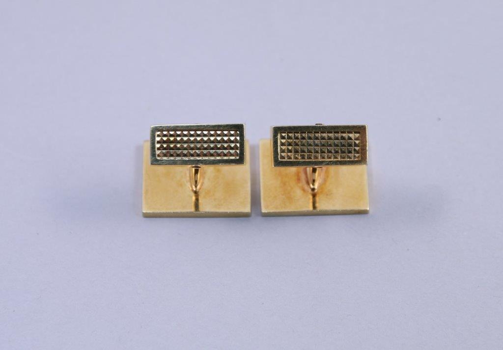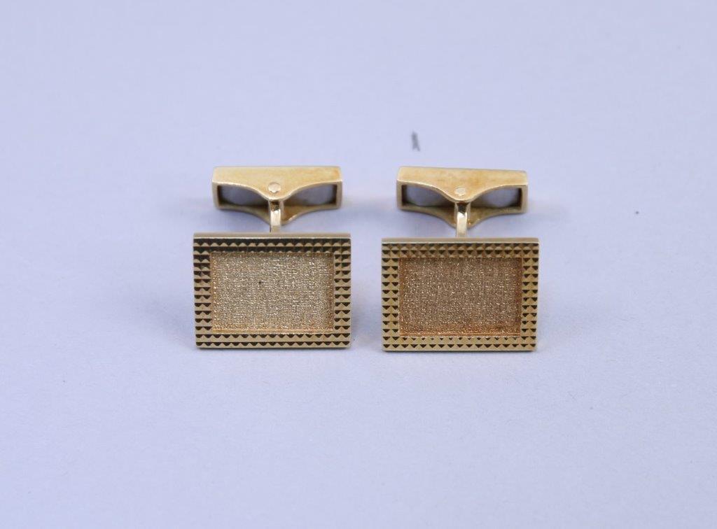 PAIRE de BOUTONS de MANCHETTES en or jaune 750 millièmes de section rectangulaire, l'intérieur guilloché.