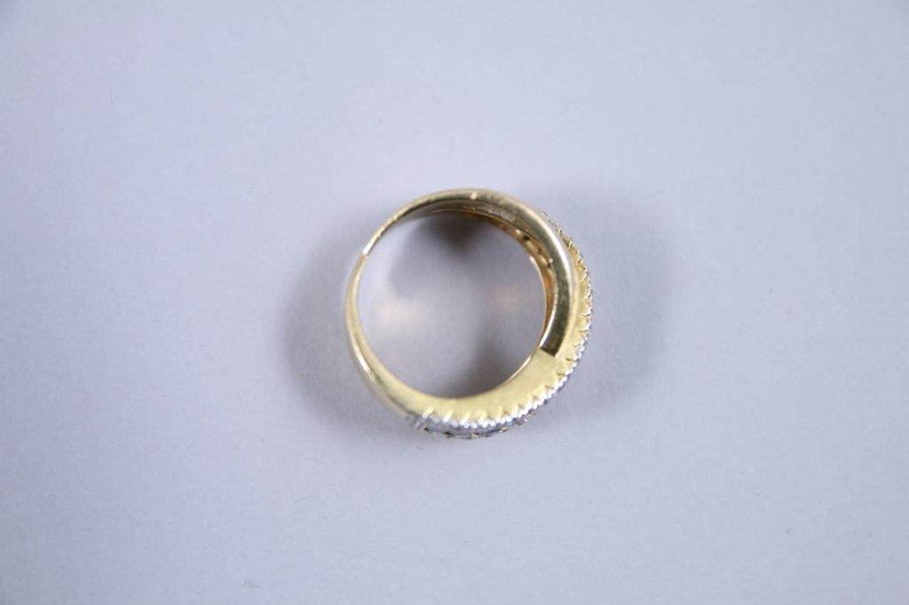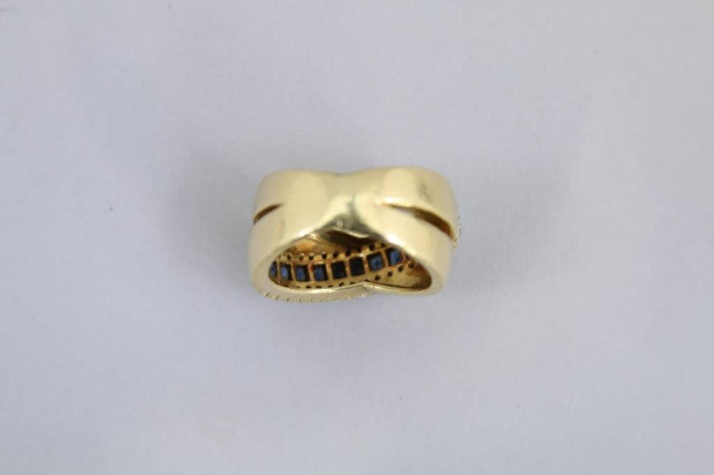 BAGUE en or jaune 750 millièmes formée d'un double anneau, l'un orné de brillants et de petits SAPHIRS carrés.