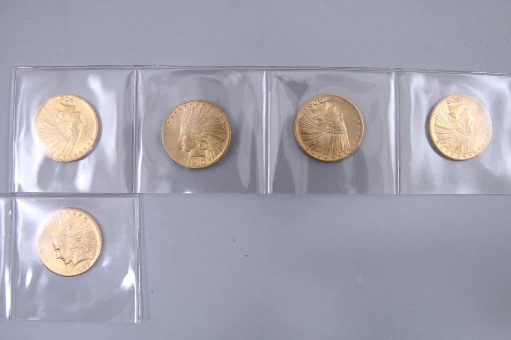 ÉTATS-UNIS. 5 PIÈCES 10 DOLLARS OR. 1 x 1908, 2 x 1909, 1 x 1910, 1 x 1932.