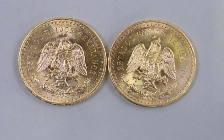 MEXIQUE. 2 PIÈCES 50 PESOS OR. 1821-1945.