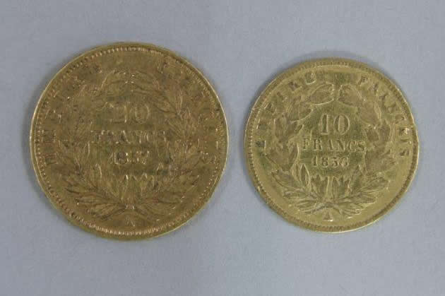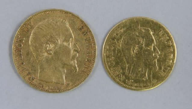FRANCE. 1 PIÈCE 20 FRANCS OR. Napoléon III (1857), 1 x 10 F or Napoléon III (1856).