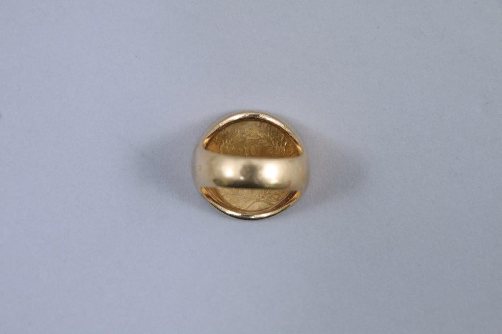 FRANCE: 1 PIÈCE DE 20 FRANCS OR Napoléon III (1854), montée en bague en or jaune 750 millièmes.