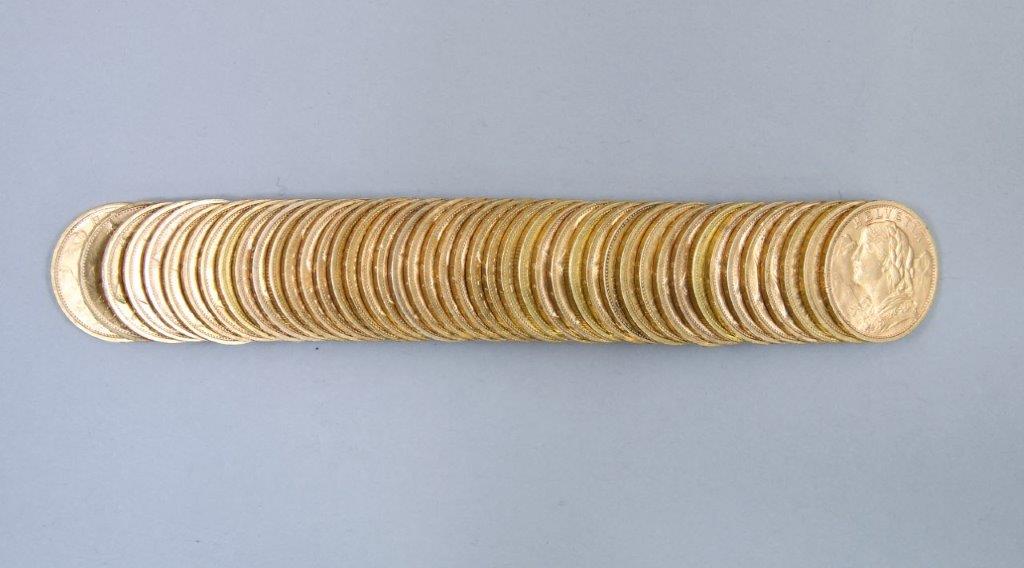 SUISSE. 45 PIÈCES de 20 FRANCS OR.