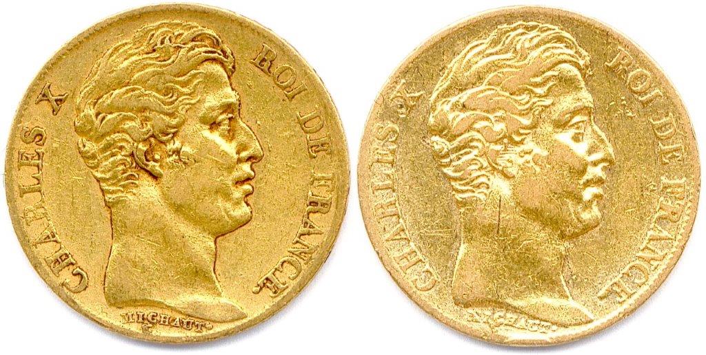 CHARLES X 1824-1830 Ensemble de deux monnaies en or (12,75...