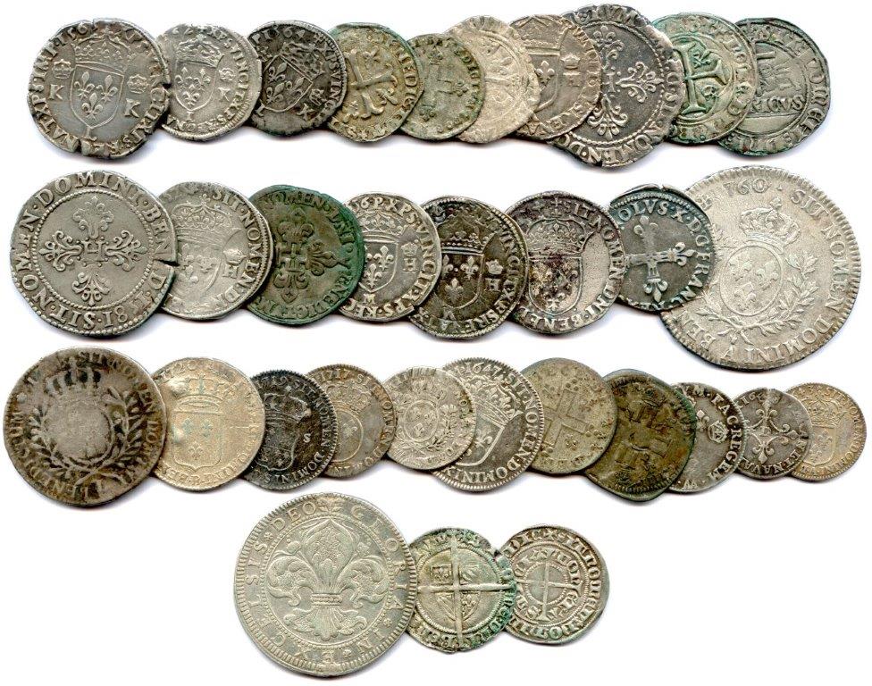 LOT de 32 monnaies françaises en argent (royales et féodales) :