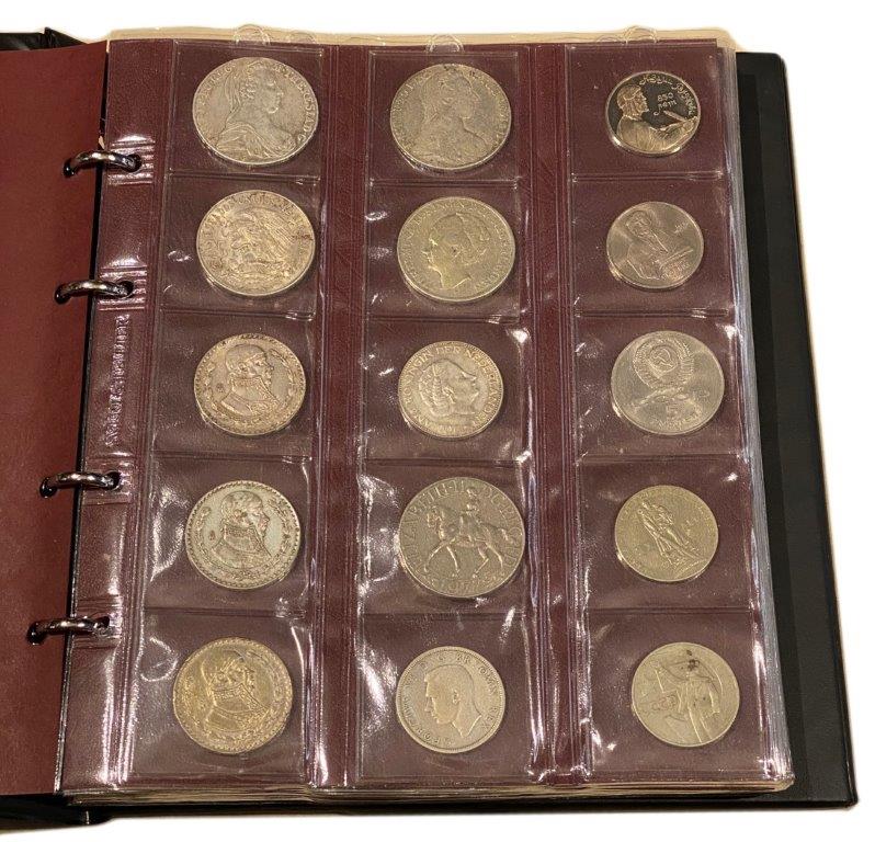 Un CLASSEUR noir contenant 215 monnaies et jetons (84 en argent et 131 en divers métaux)