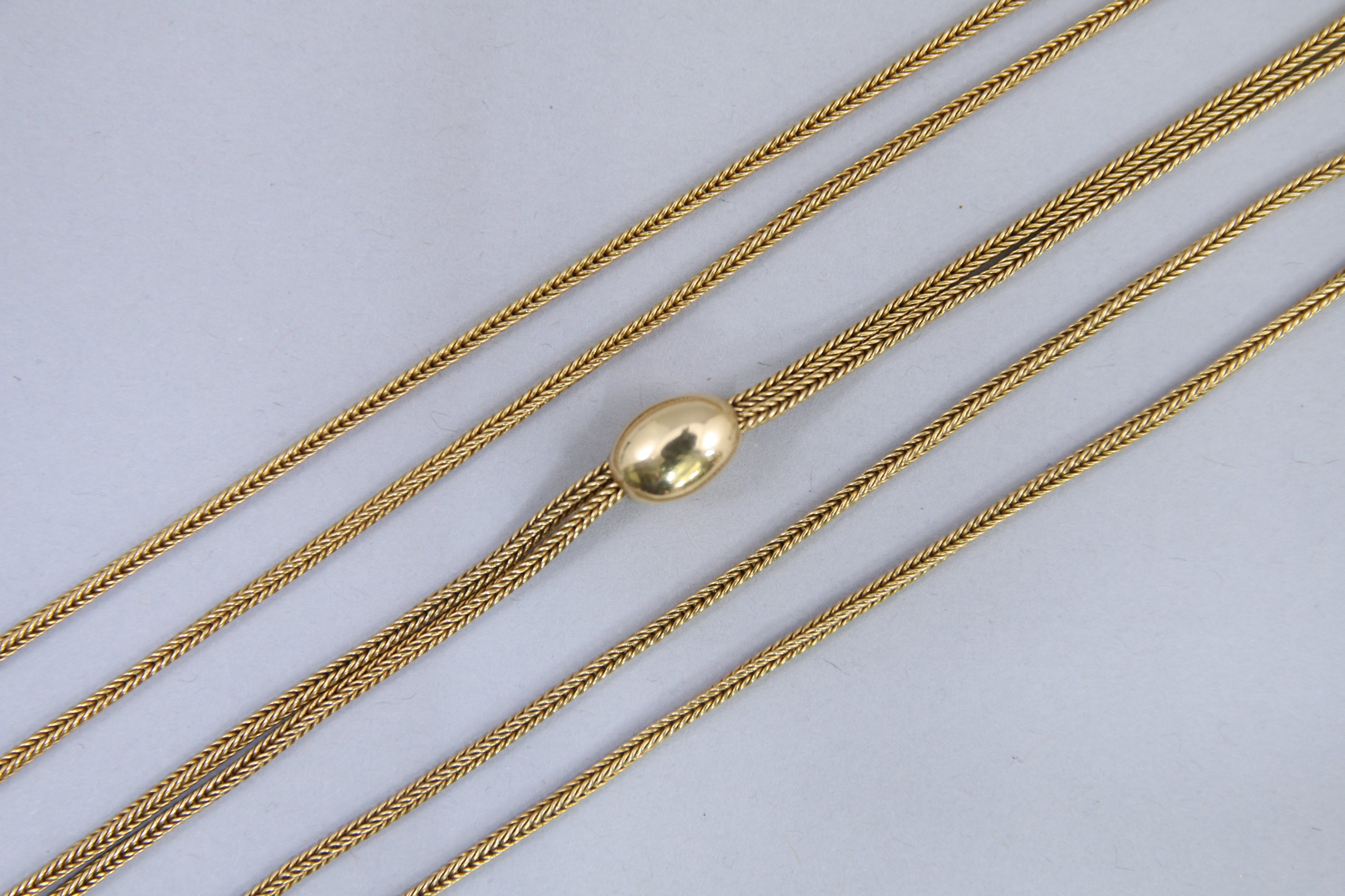 CHAÎNE DOUBLE en or jaune 750 millièmes ornée dune poulie mobile.