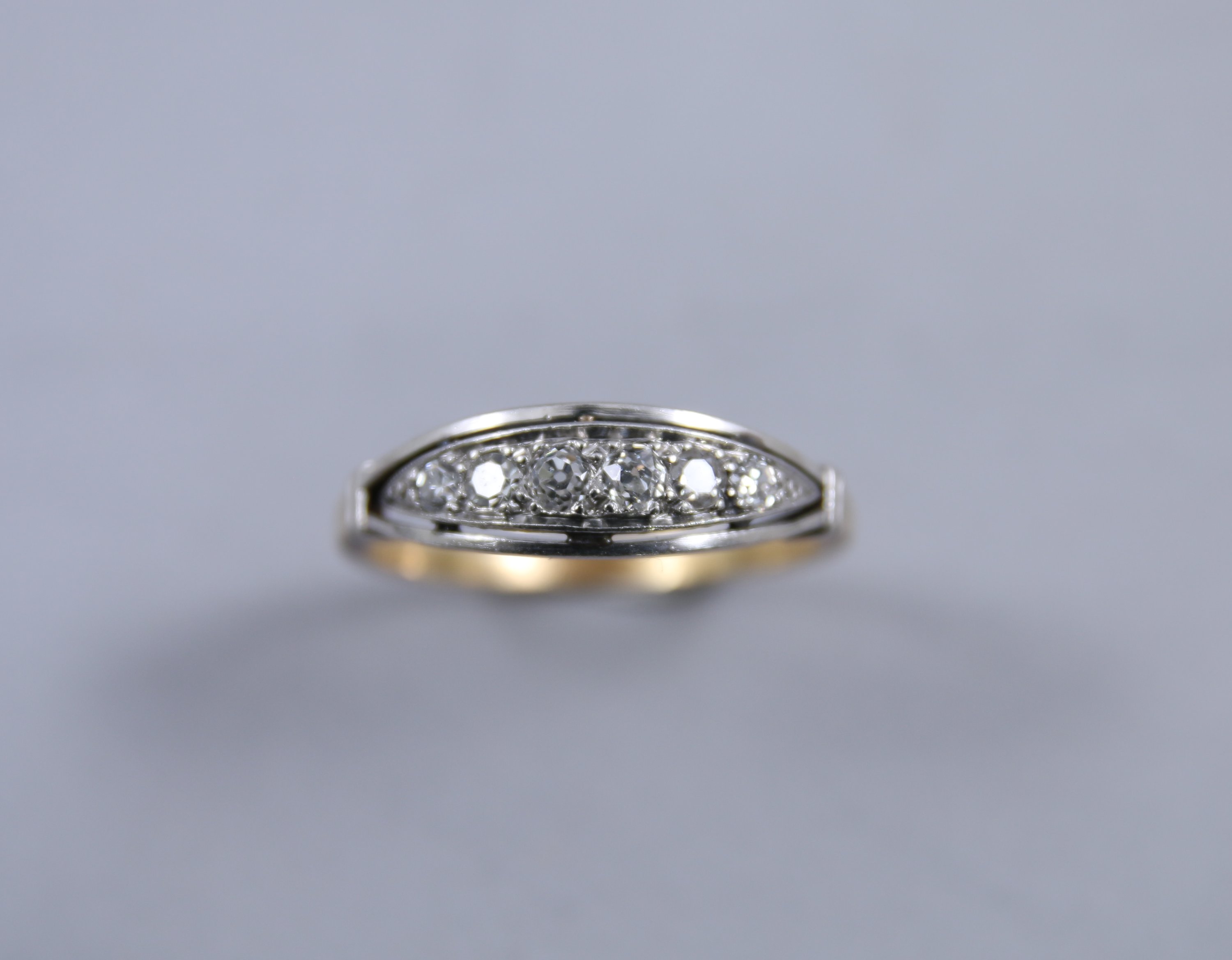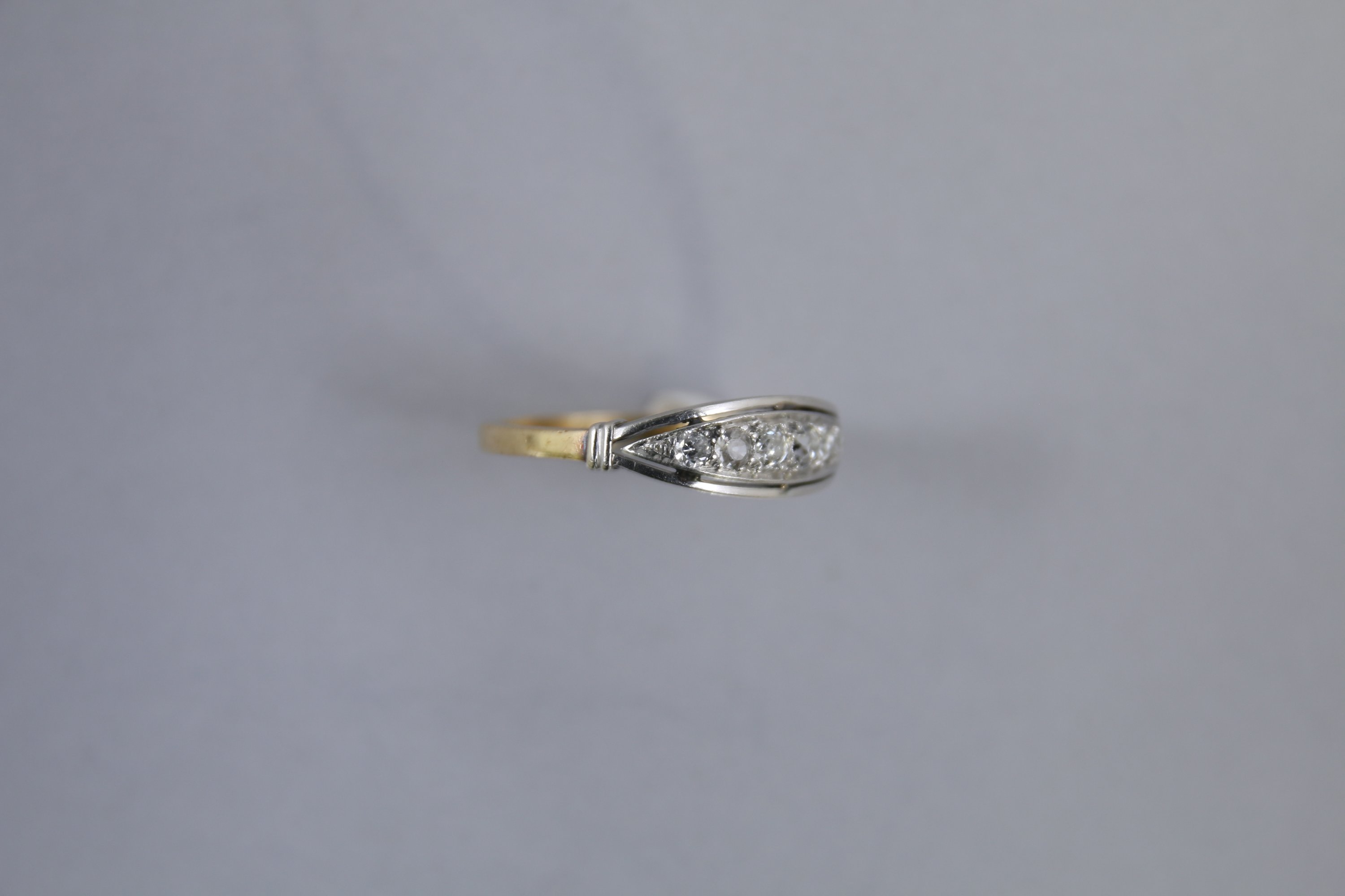 BAGUE aux deux or jaune et gris 750 millièmes ornée de six DIAMANTS.