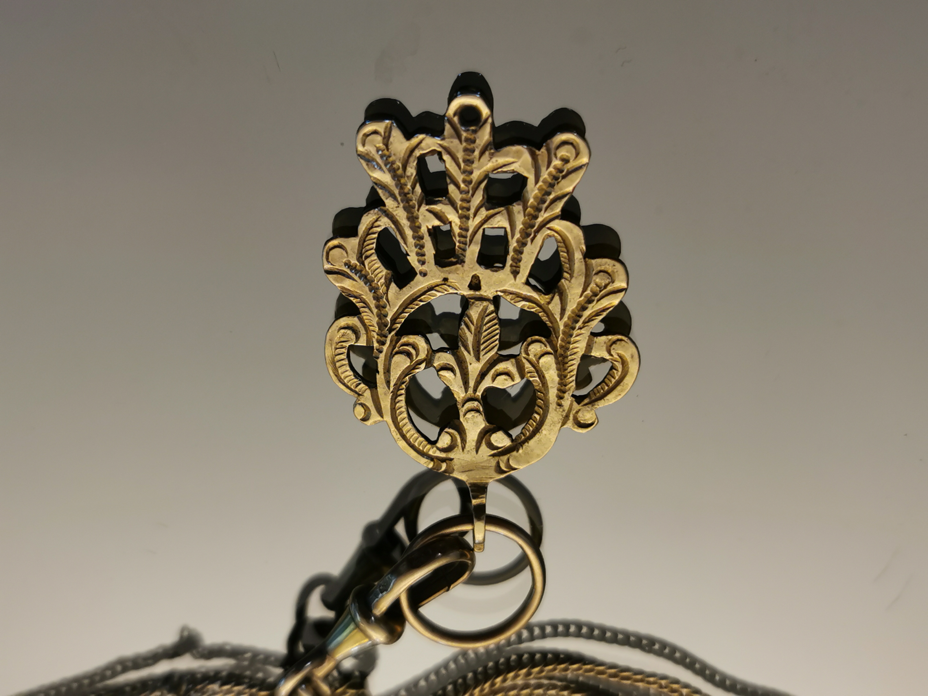 PENDENTIF or jaune 750 millièmes gravé de motifs, en forme de fleurs de lys et feuilles d'acanthe.