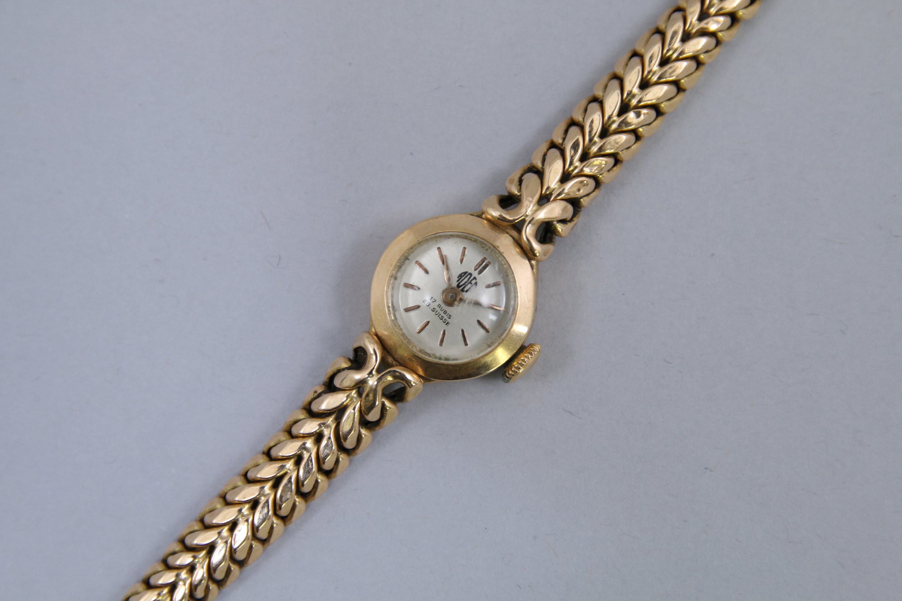 MONTRE de DAME, le boîtier et le bracelet en maille articulée en or jaune 750 millièmes. Le cadran signé Ader. Numéroté 10046.