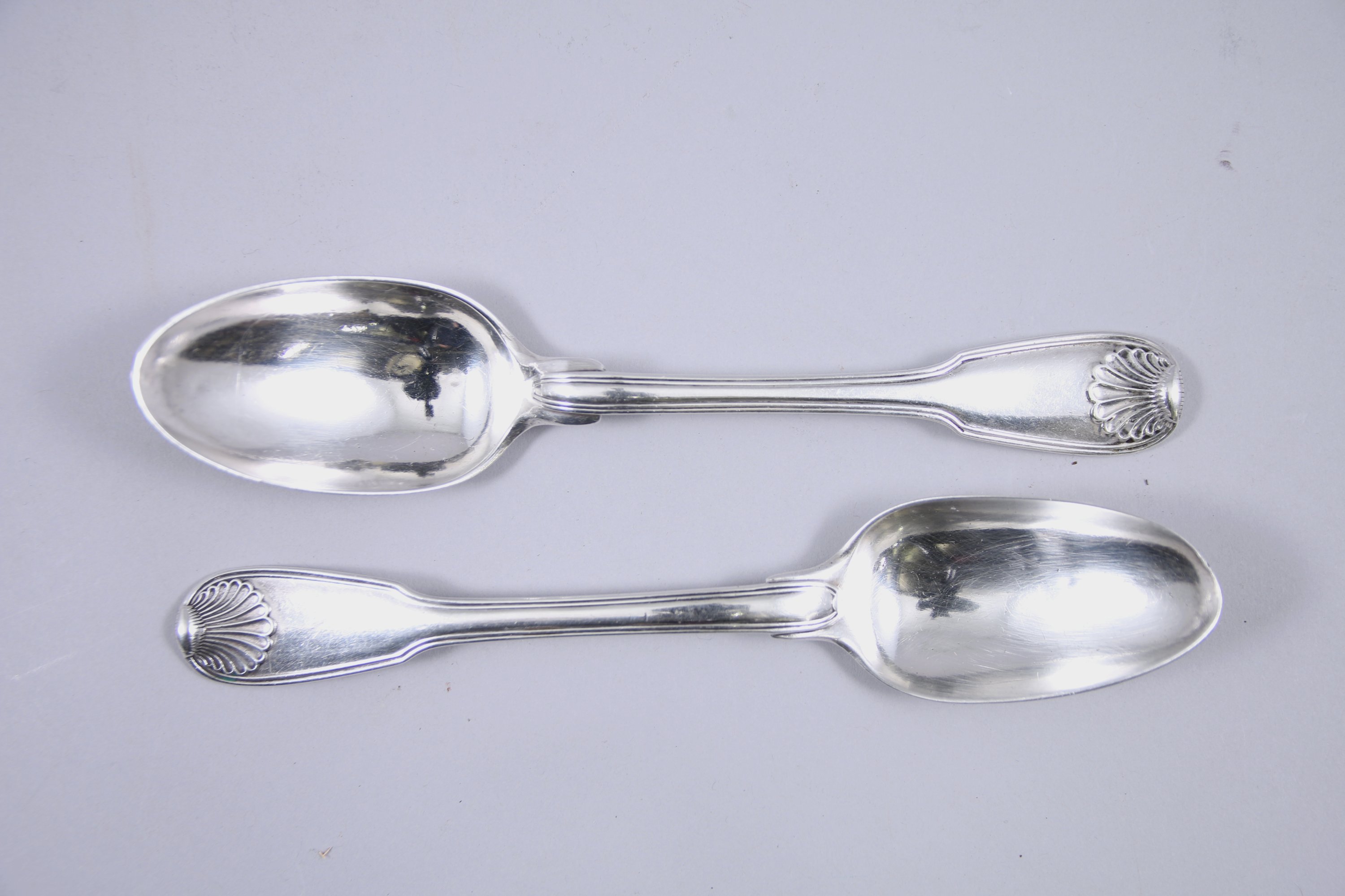 Deux CUILLERS en argent modèle filet coquille. L'une gravée de chiffres.