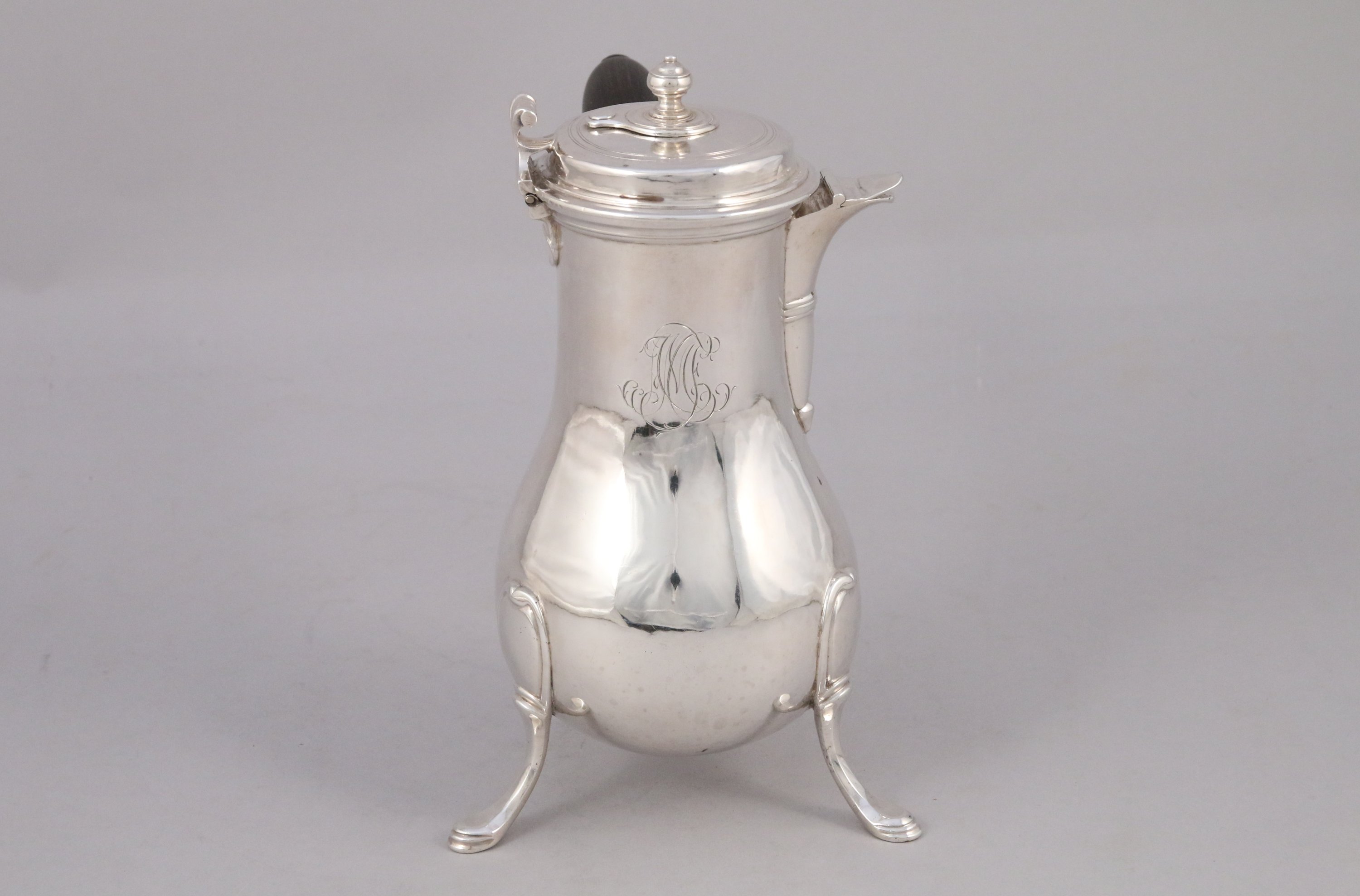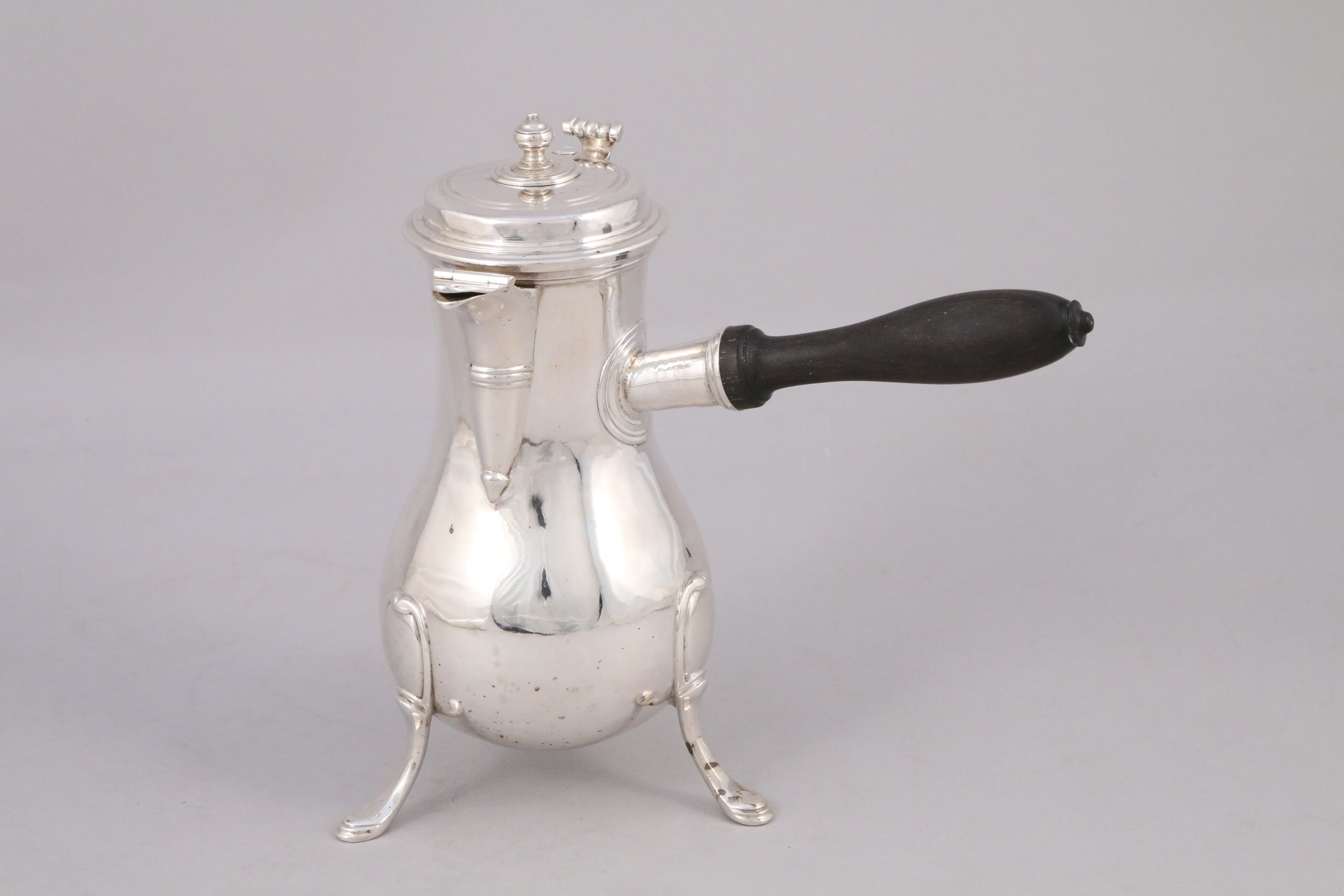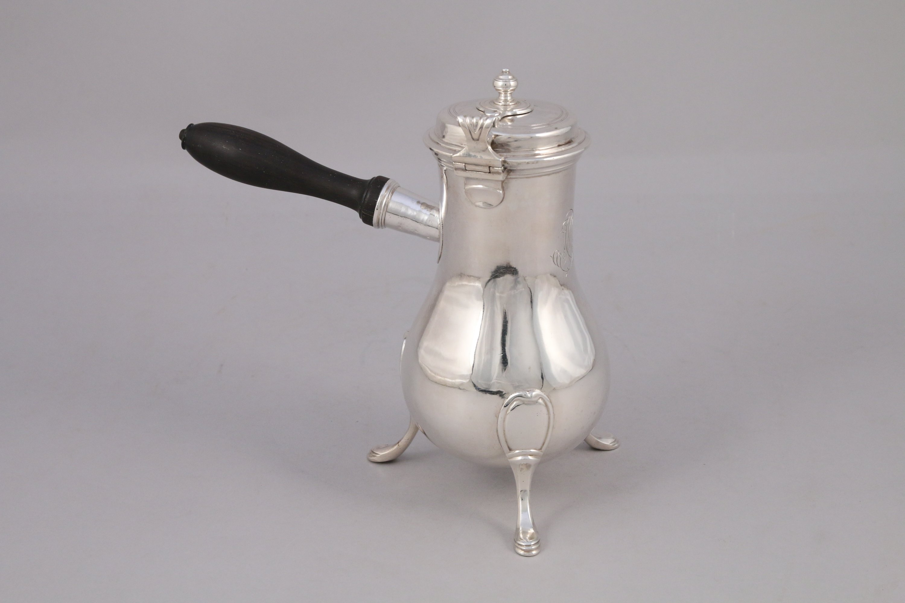 CHOCOLATIÈRE en argent et manche ébène. Modèle uni à bec dit de canard.
