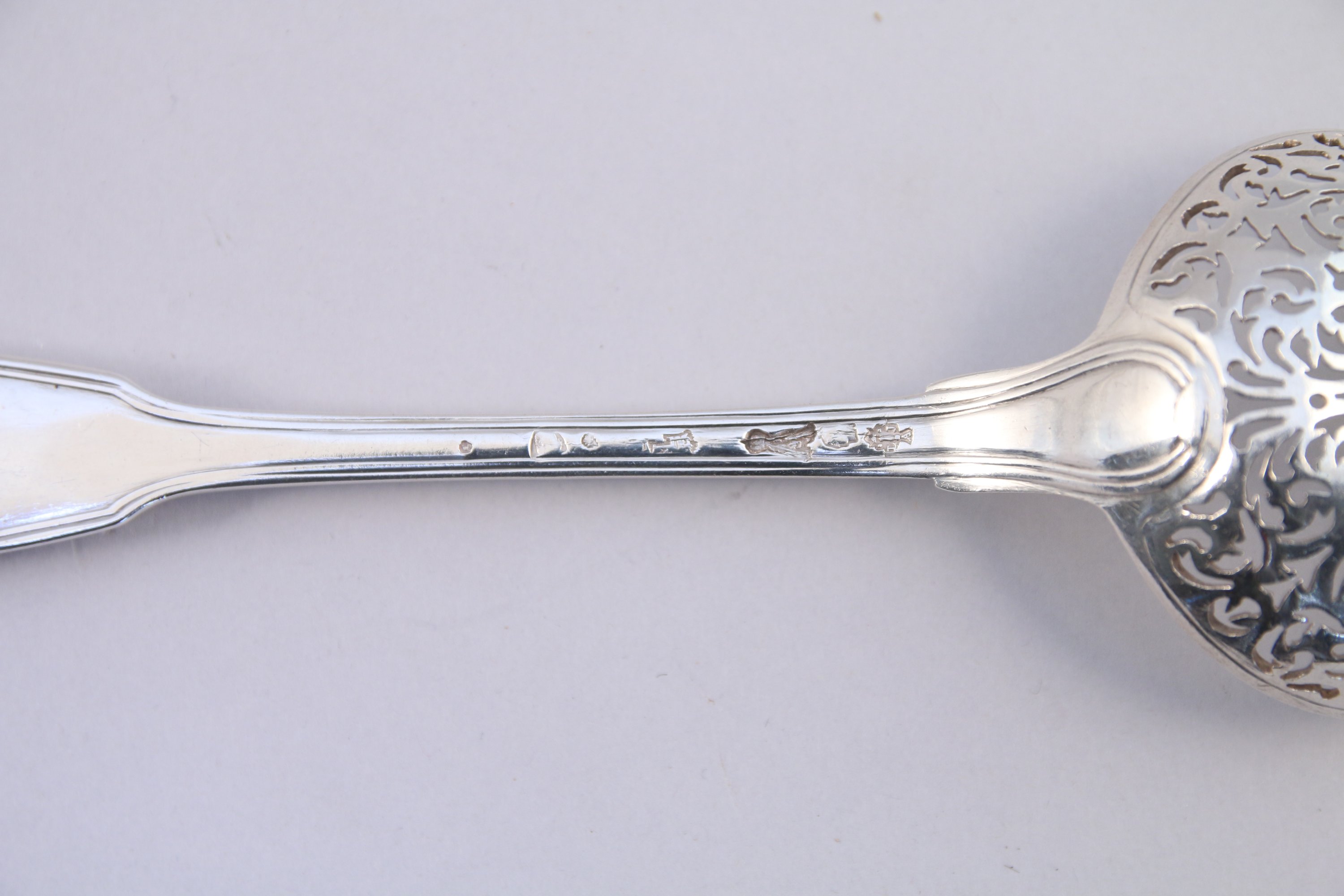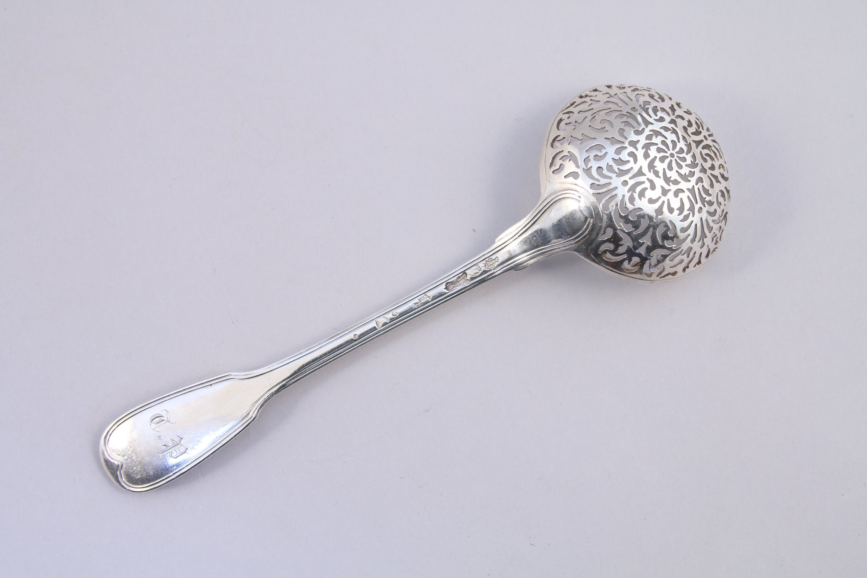 CUILLER à SAUPOUDRER en argent, modèle à filet.