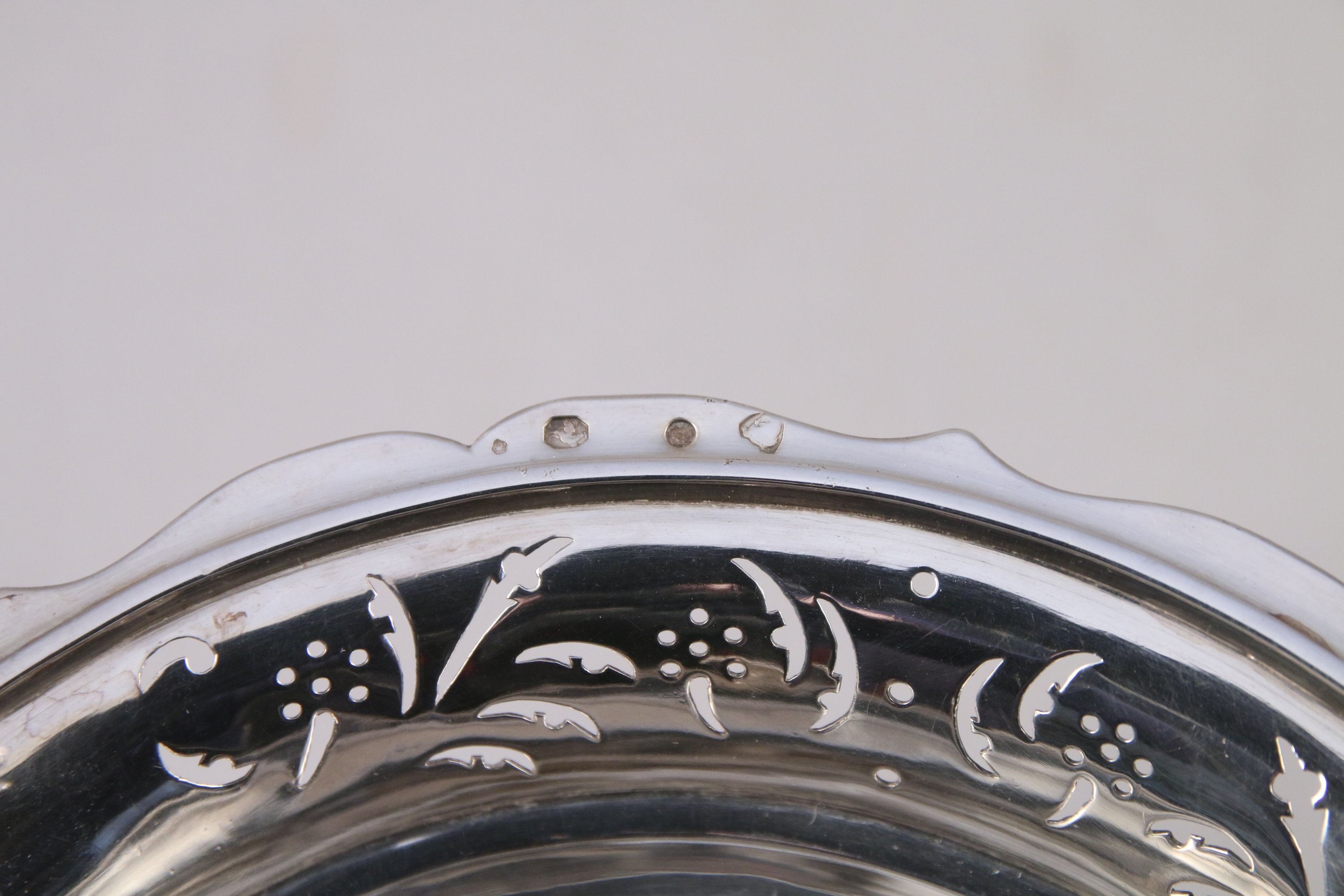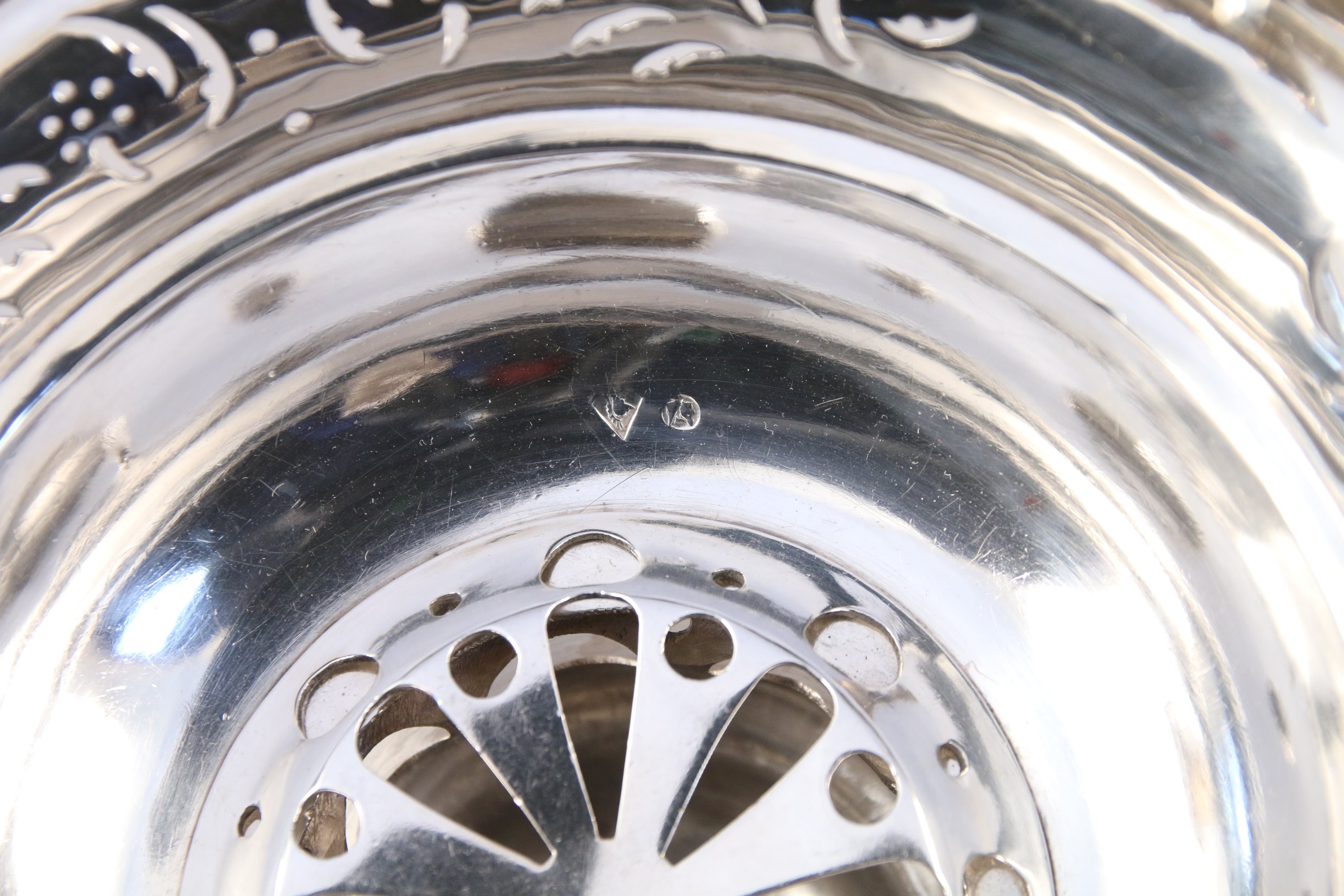 RÉCHAUD de TABLE en argent, repose sur trois patins en bois noirci. Bassin repercé d'entrelacs.