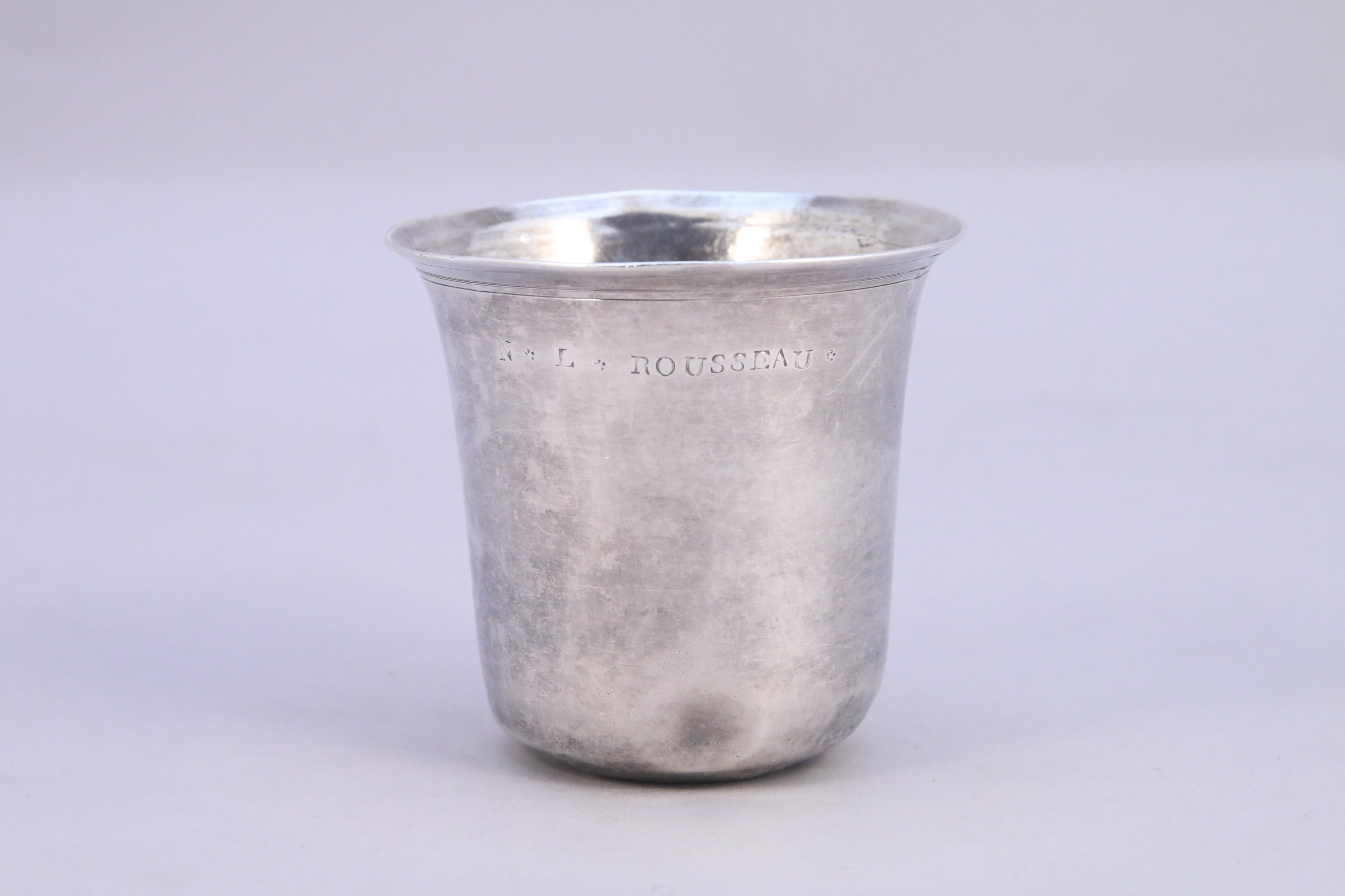 TIMBALE en argent, le col évasé bordé de plusieurs filets gravé V*ROCHELLE /N*L*ROUSSEAU.