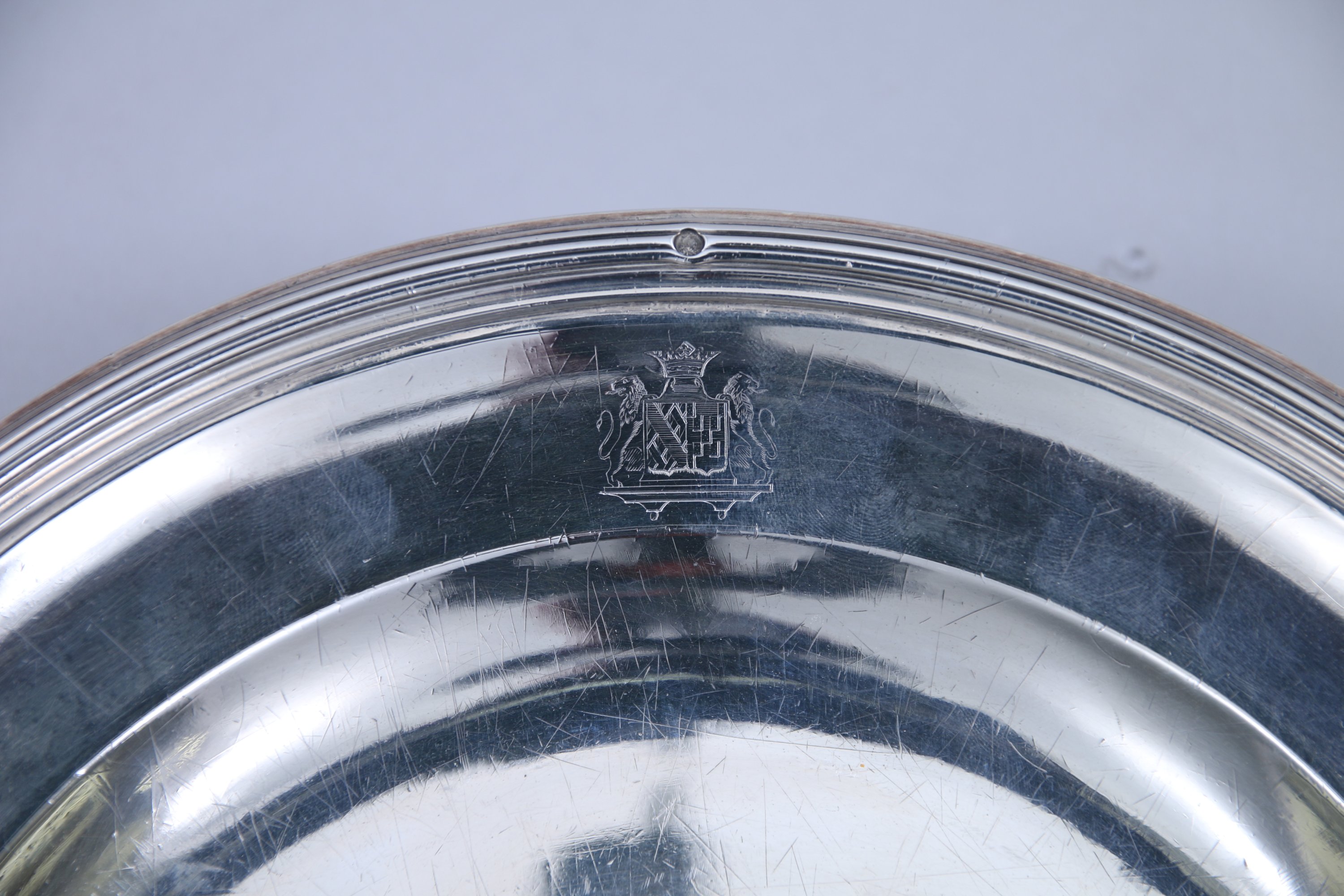 PLAT en argent modèle à filets. Orné d'un écu surmonté d'une couronne marquisale et flanqué de deux lions.