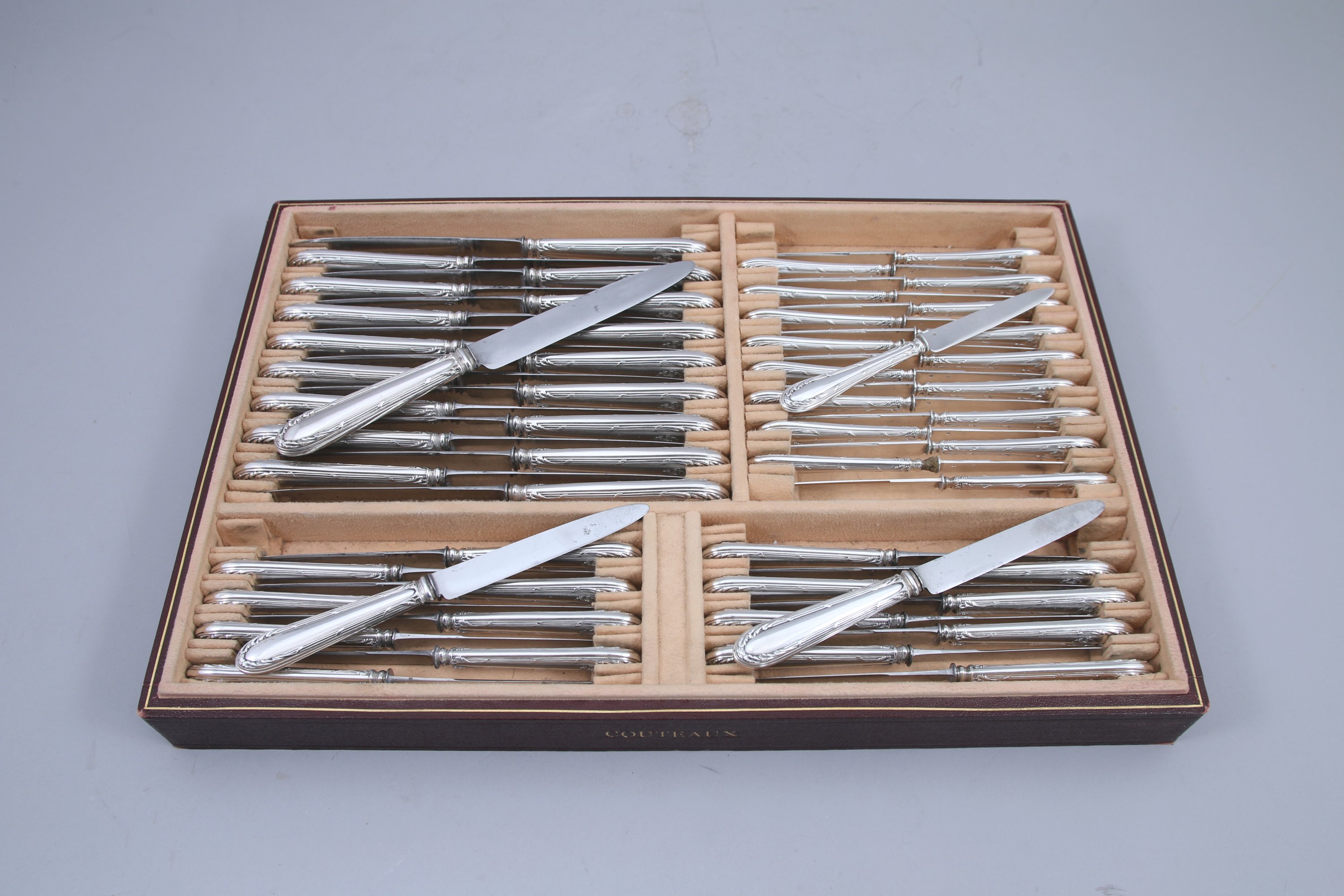 - DIX-HUIT COUTEAUX à FRUITS lame argent et manche argent fourré. Poids brut 630 g.