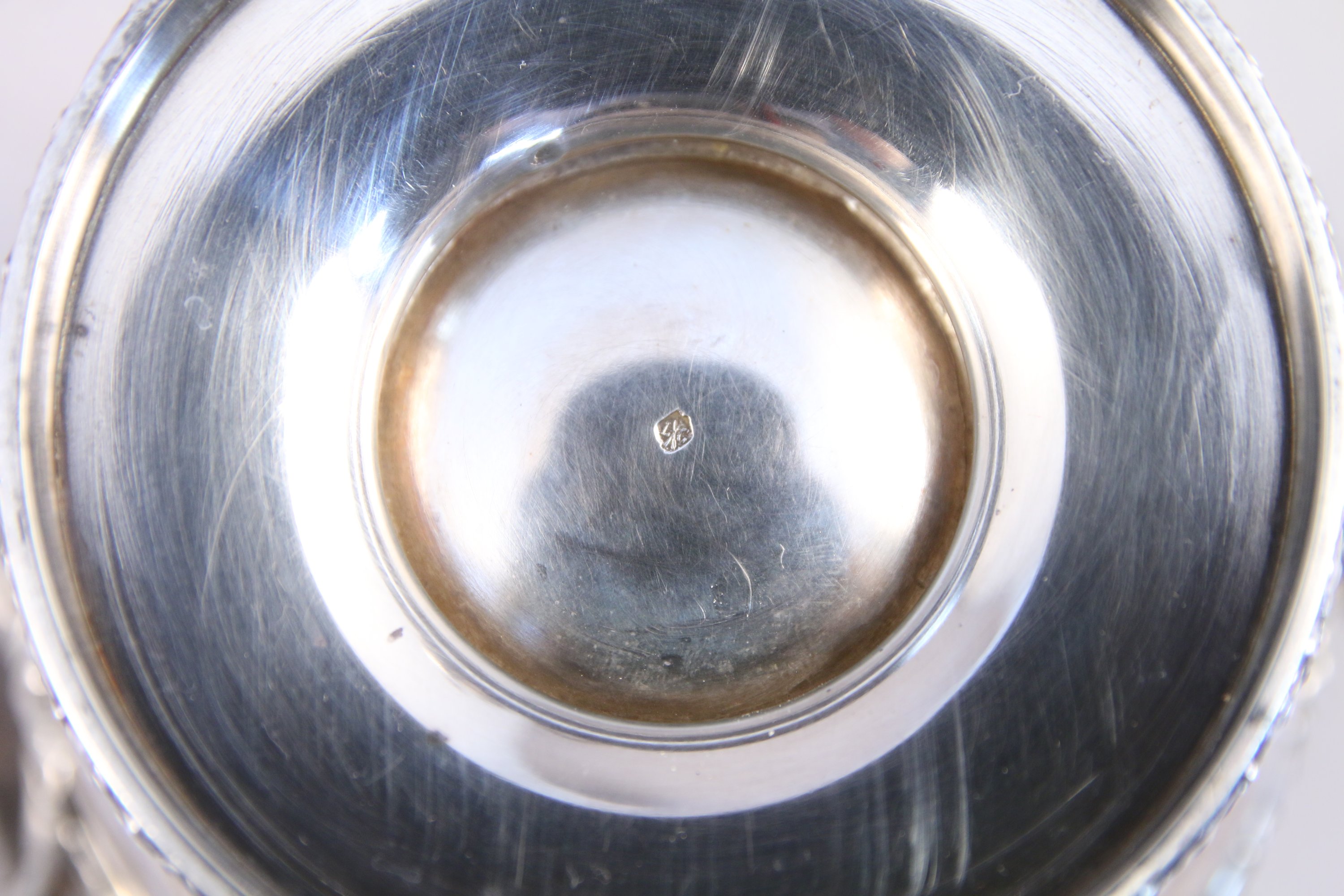 Sucrier : Haut. 17,5, Larg. 15 cm. Poids 455 g. (déformation au couvercle).