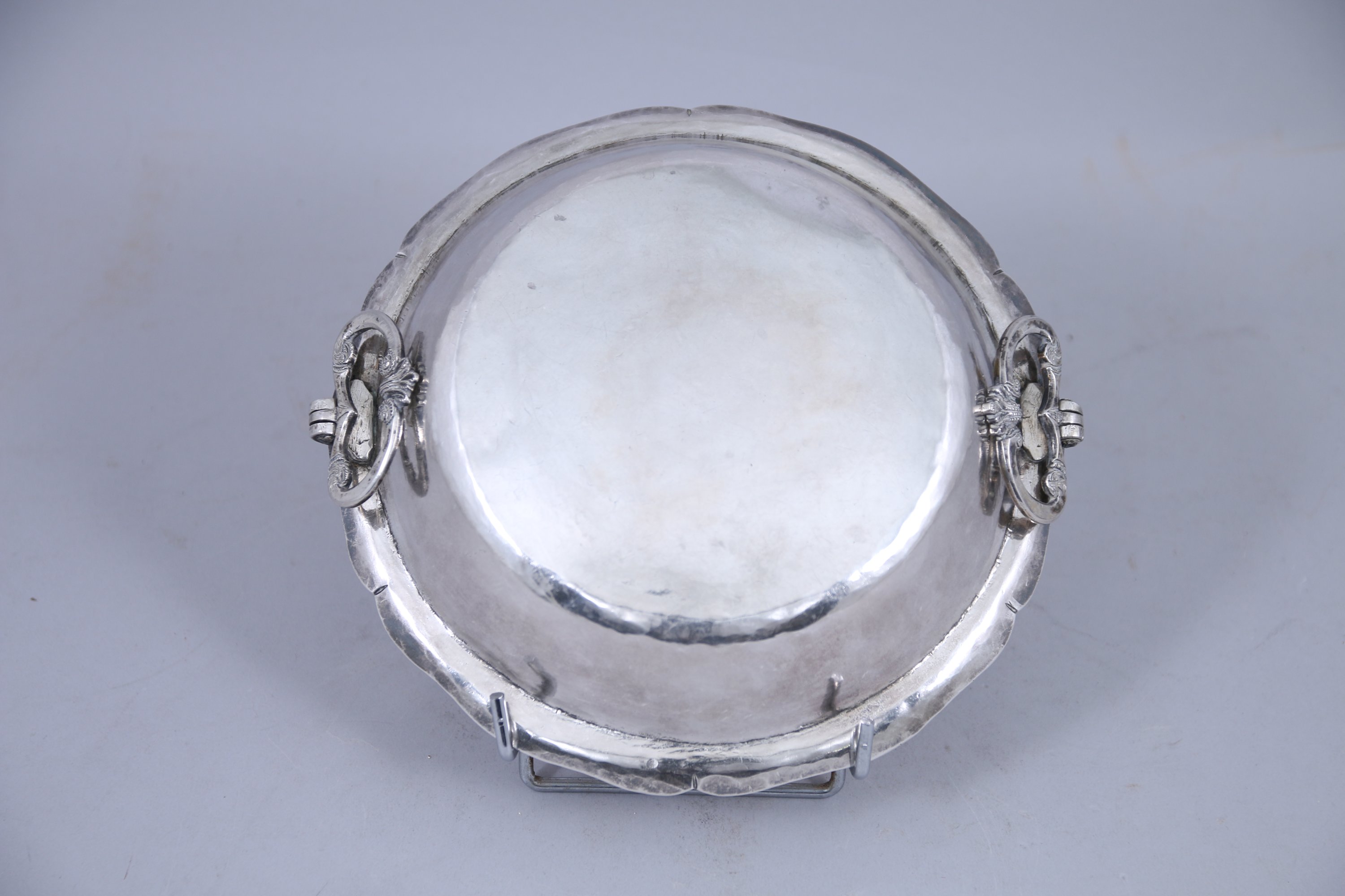 ÉCUELLE à OREILLES en argent bas titre. Les anses mobiles à motifs de feuilles d'acanthe.