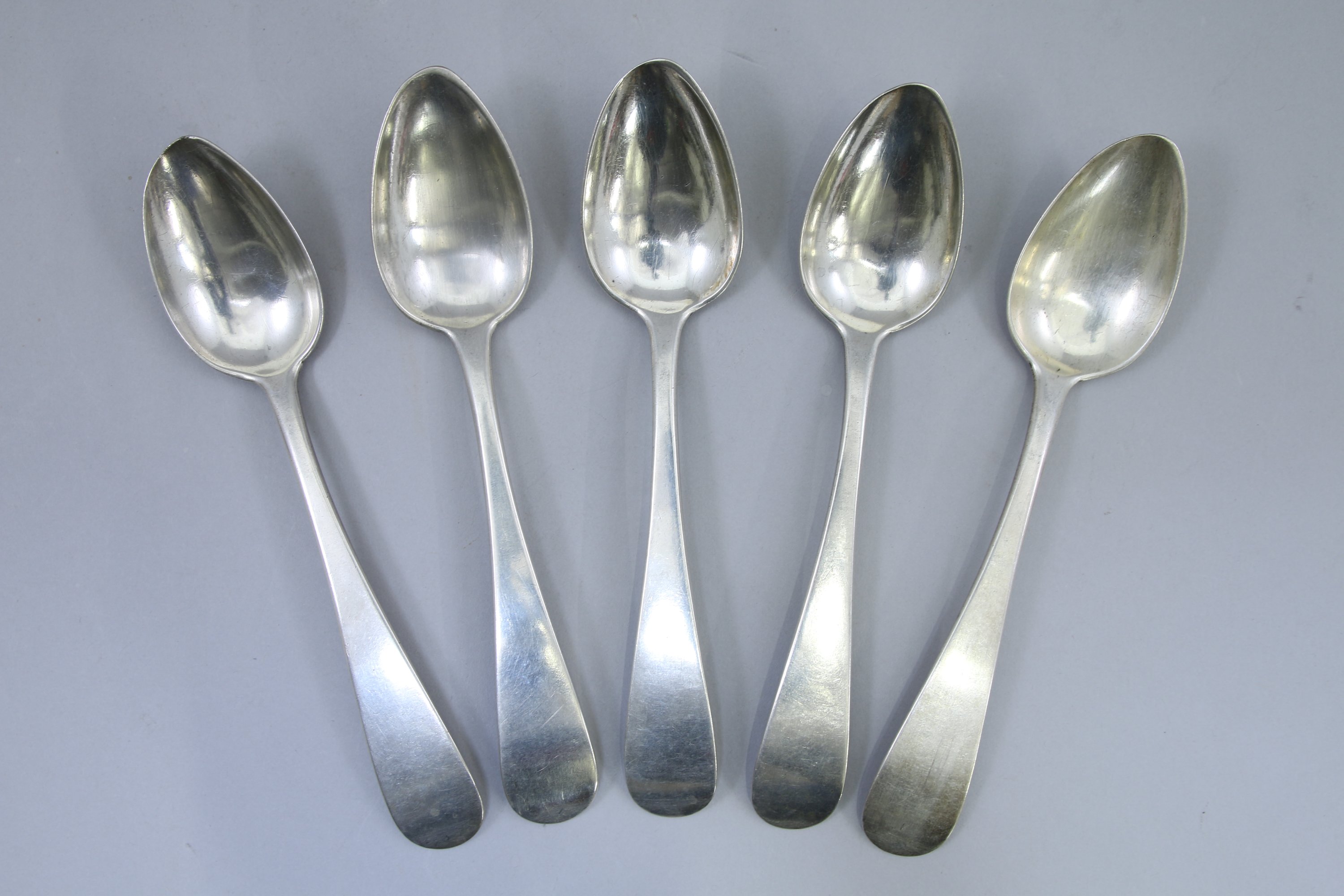 Cinq CUILLERS en argent modèle uniplat gravées "IB" et "IA".