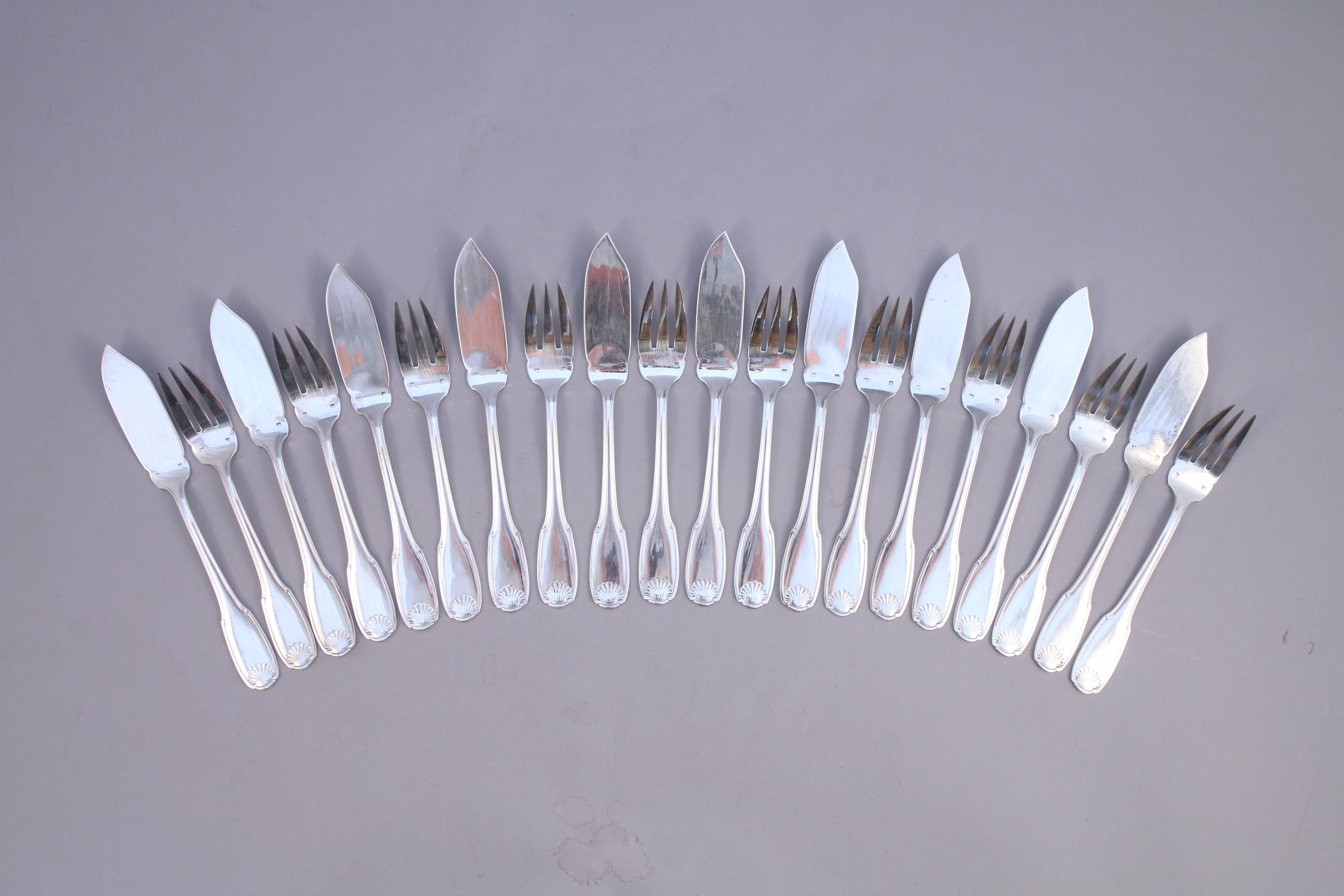 Dix COUVERTS à POISSON en métal argenté modèle coquille.