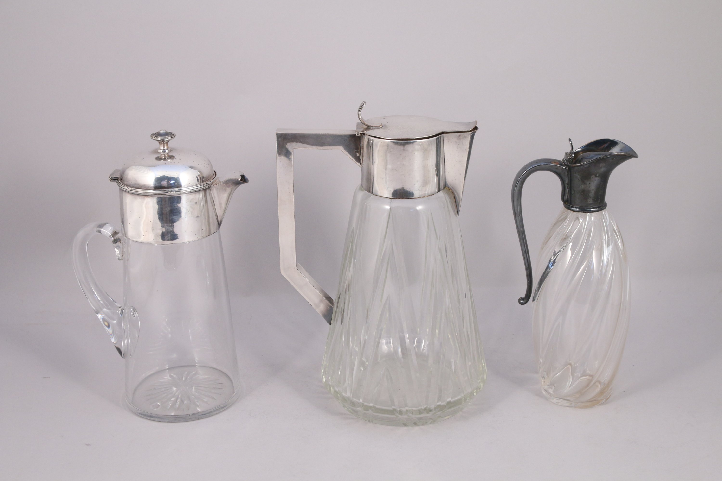 JOINT : CARAFE à VIN en verre de forme torse, monture en métal argenté. Haut. 27 cm.