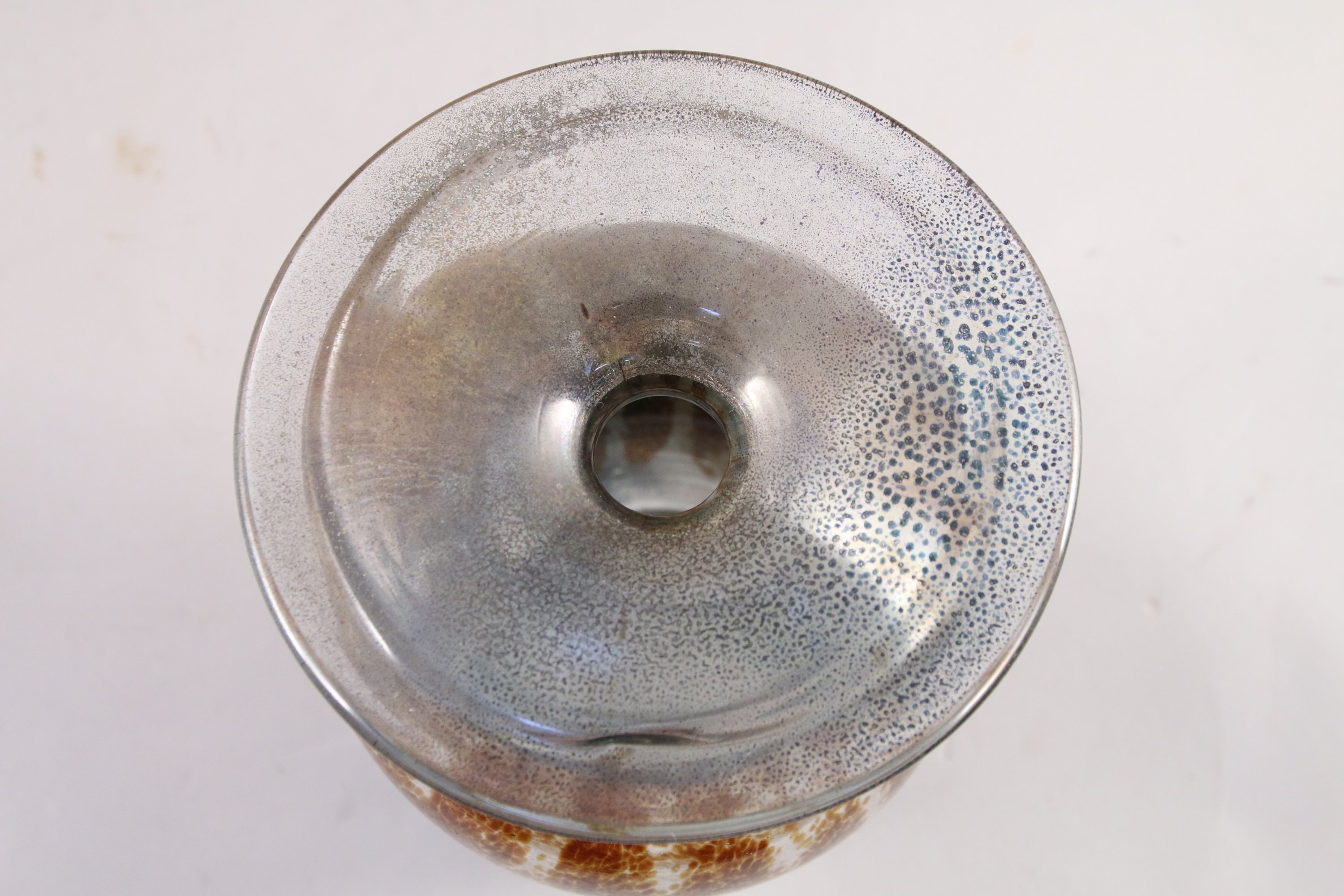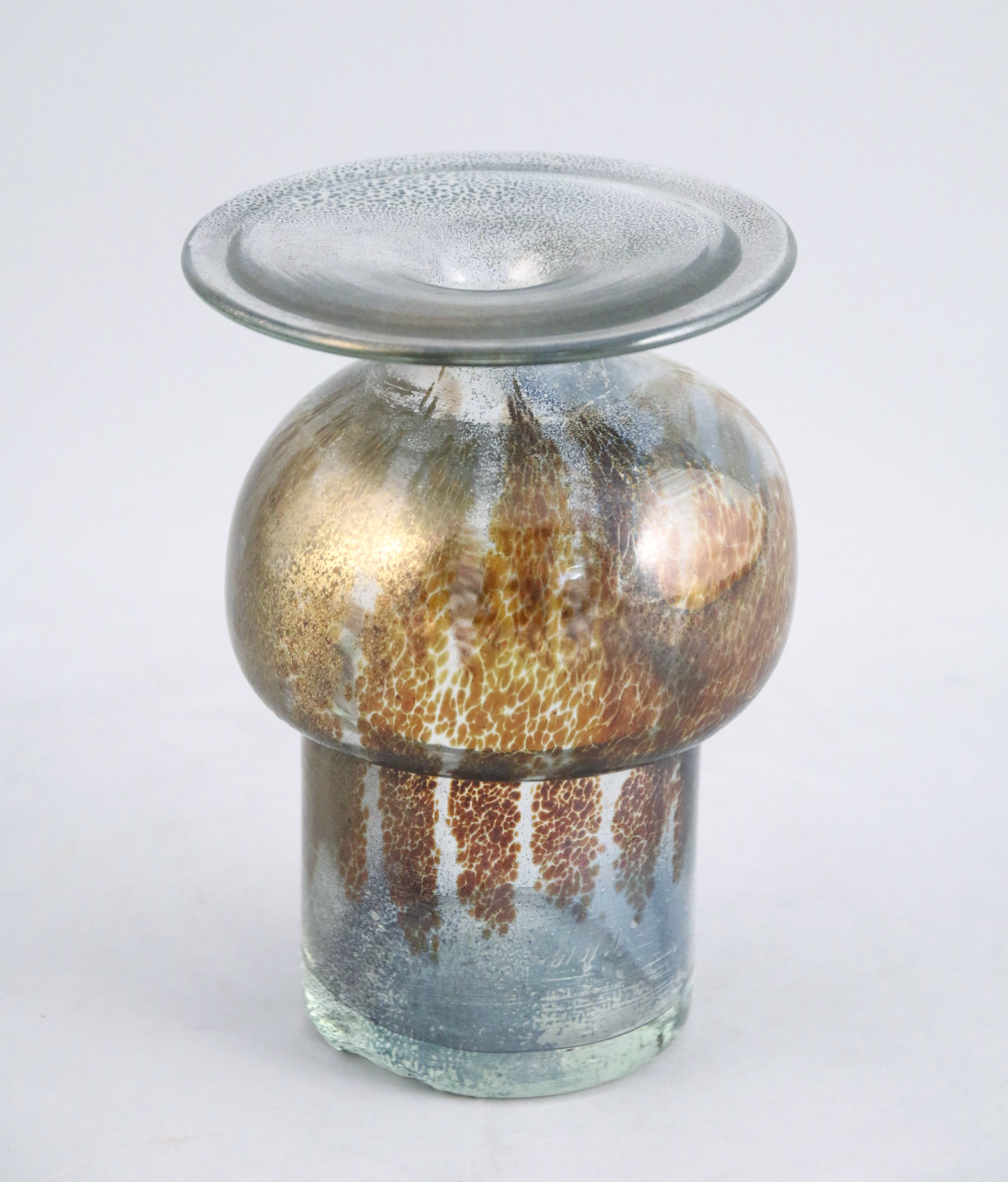 VASE cylindrique renflé à col aplati. Inclusion d'oxydes métalliques.