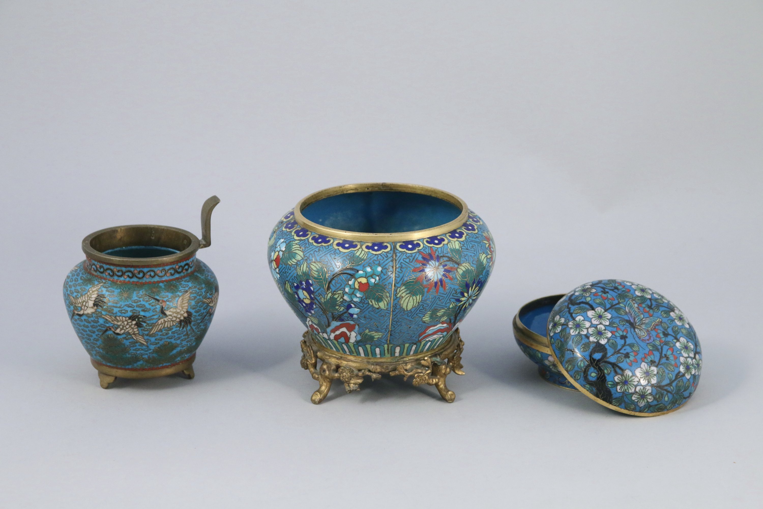 CHINE - XXe s. ENSEMBLE en émaux cloisonnés comprenant :-...