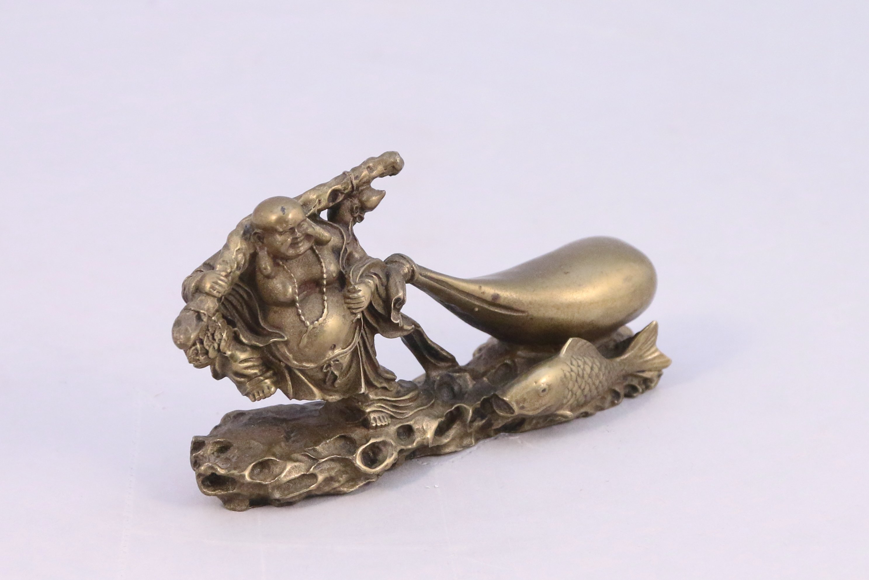 CHINE - Moderne. BRONZE. La pêche de Bouddha. Haut. 7,...