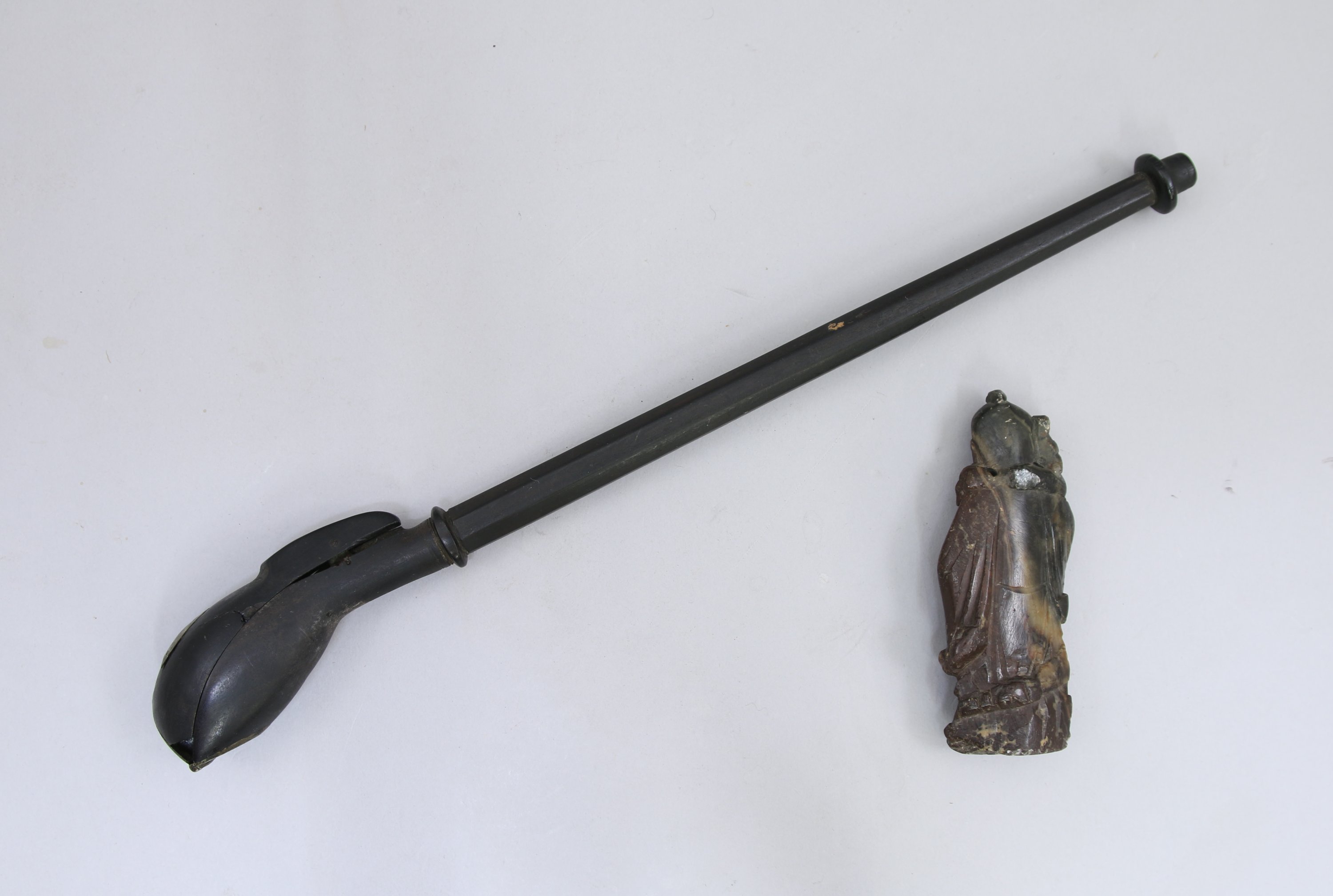 PIPE en bois et PERSONNAGE debout en stéatite.