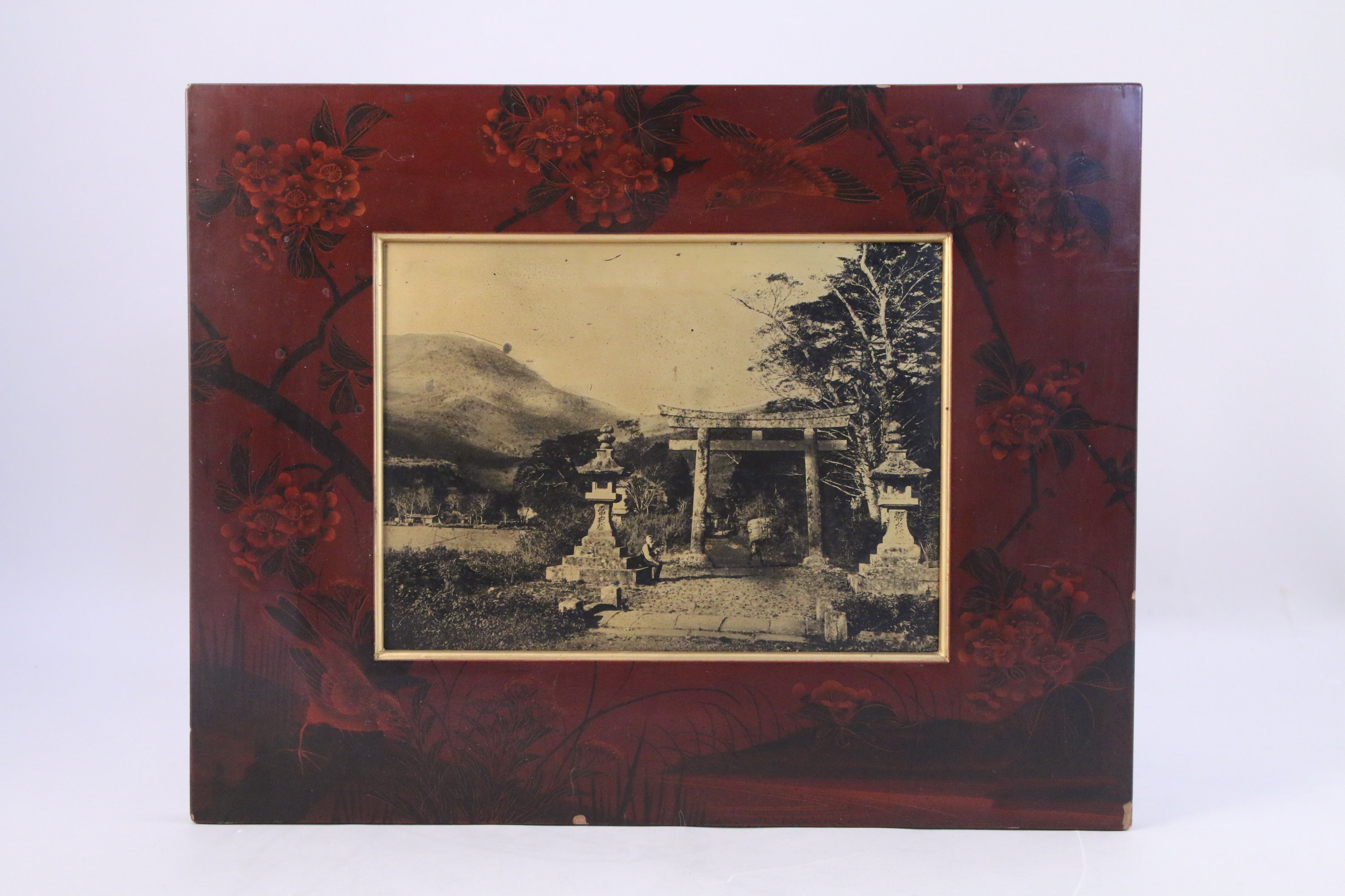 TIRAGE PHOTOGRAPHIAUE marouflé sur panneau de bois. Dans un encadrement laqué à décors d'oiseaux branchés.