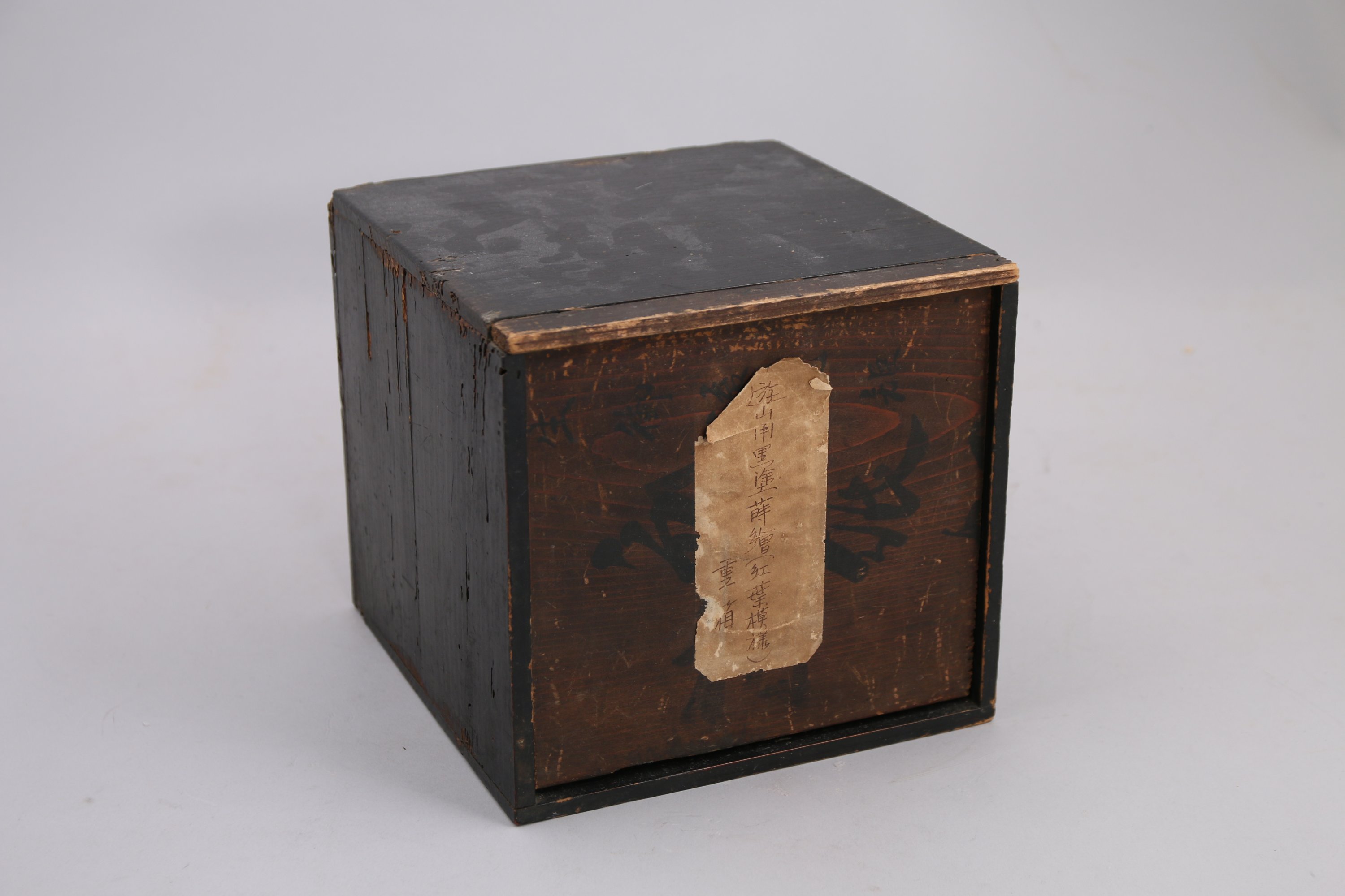 Boîte saké : Haut. 4,5, Long. 17, Prof. 17 cm. (Petits accidents).