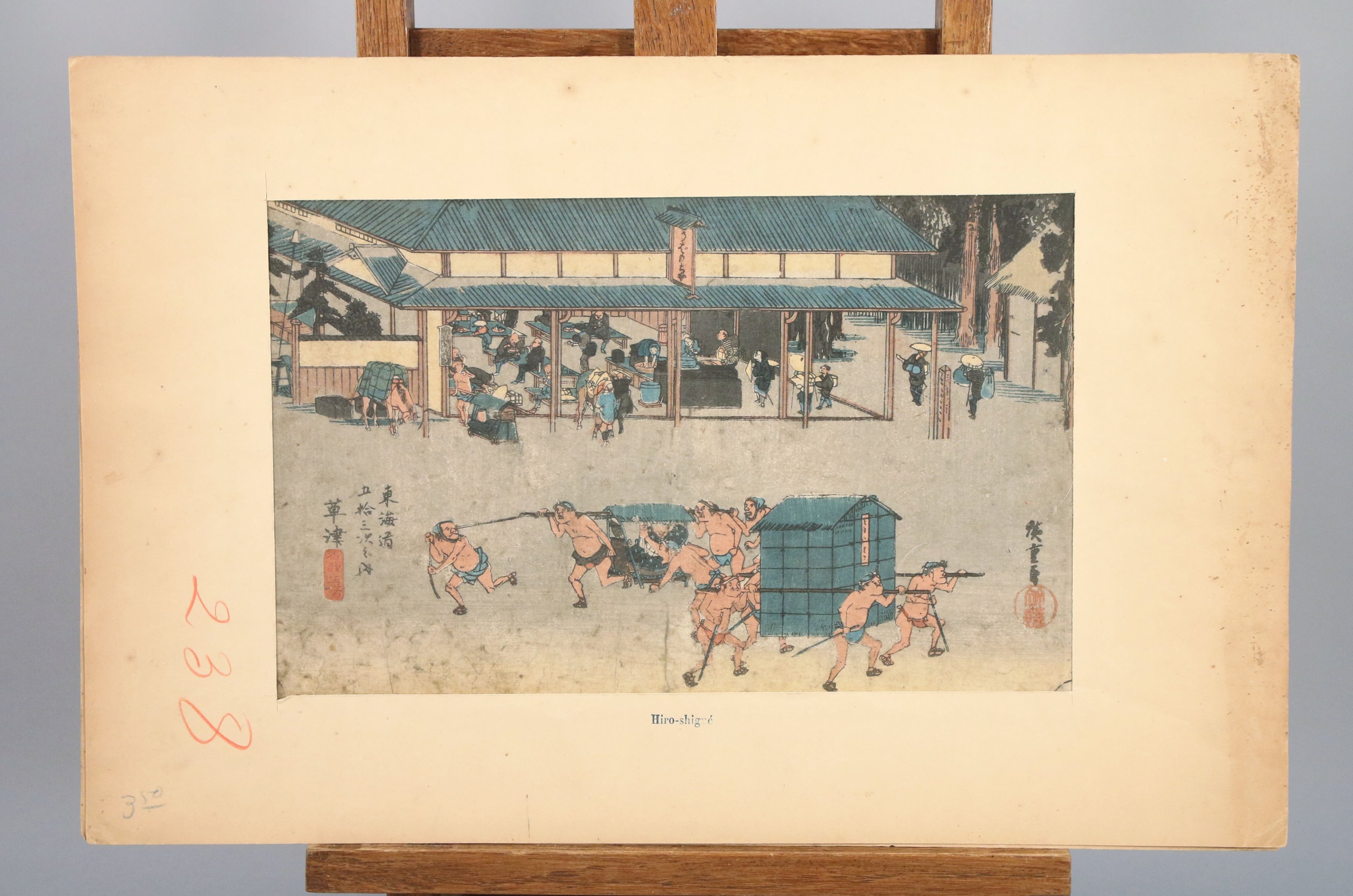 Cinq OBAN YOKO-E de la série Tokaido gojusan tsugi no uchi , Les cinquante-trois stations du Tokaido, stations Fujisawa, Ishibe, Kusatsu, Fukuroi, et un oban tate-e de la série Shinsen Edo Meisho, Nouvelles vues d'Edo, cerisiers en fleurs au temple Toeizan de Ueno. Tirages tardifs.