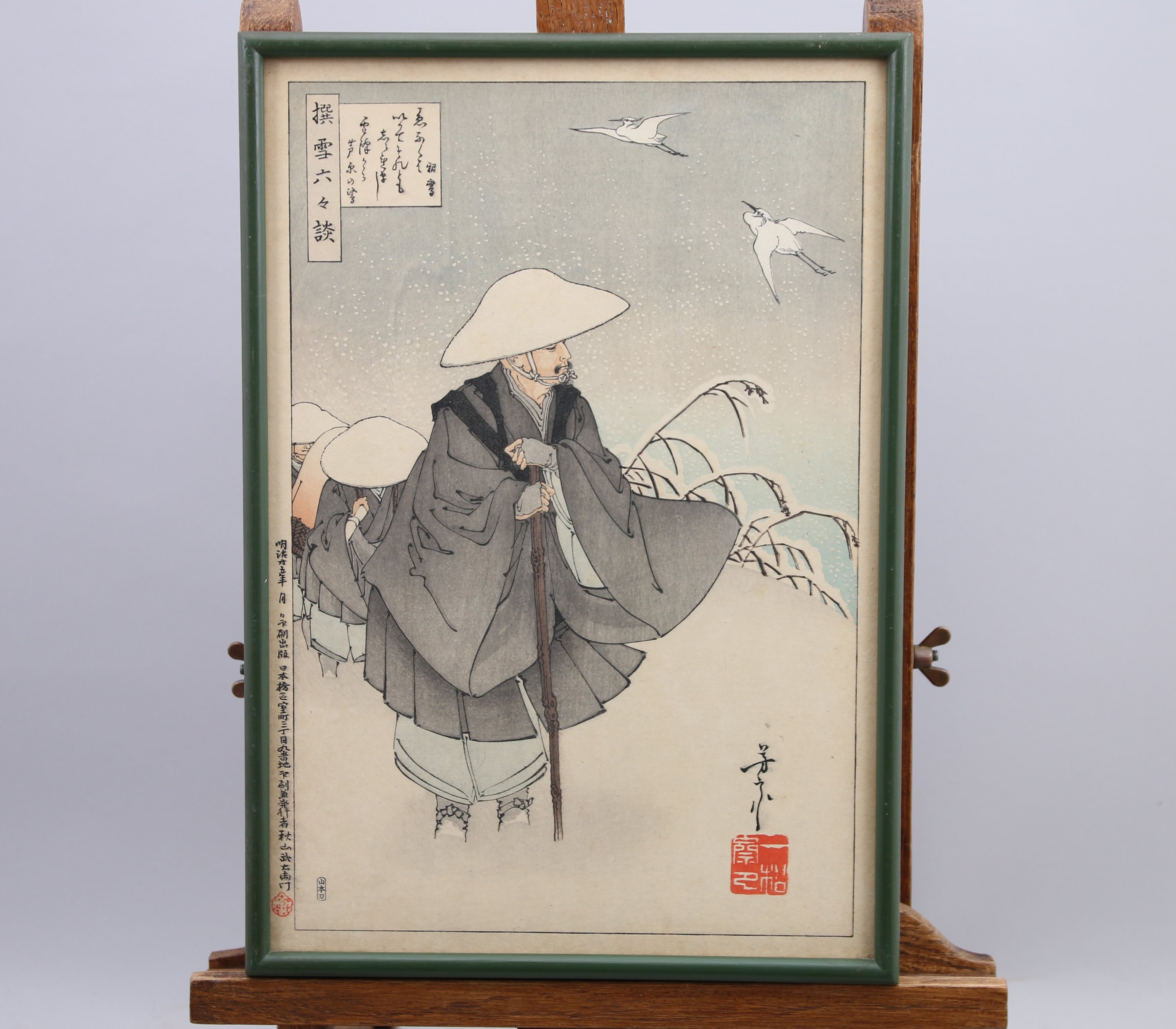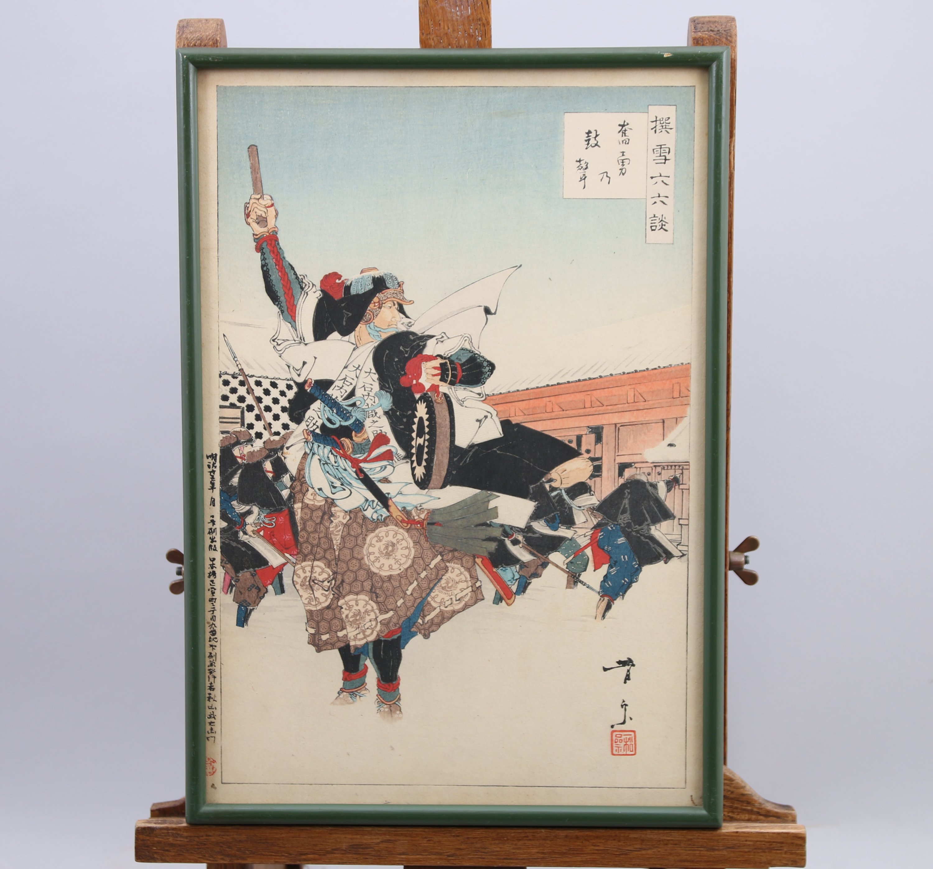 Douze OBAN TATE-E de la série Sensetsu rokuju roku dan, Soixante six histoires de neige. Signés Yoshimune, datés Meiji 26, 27.