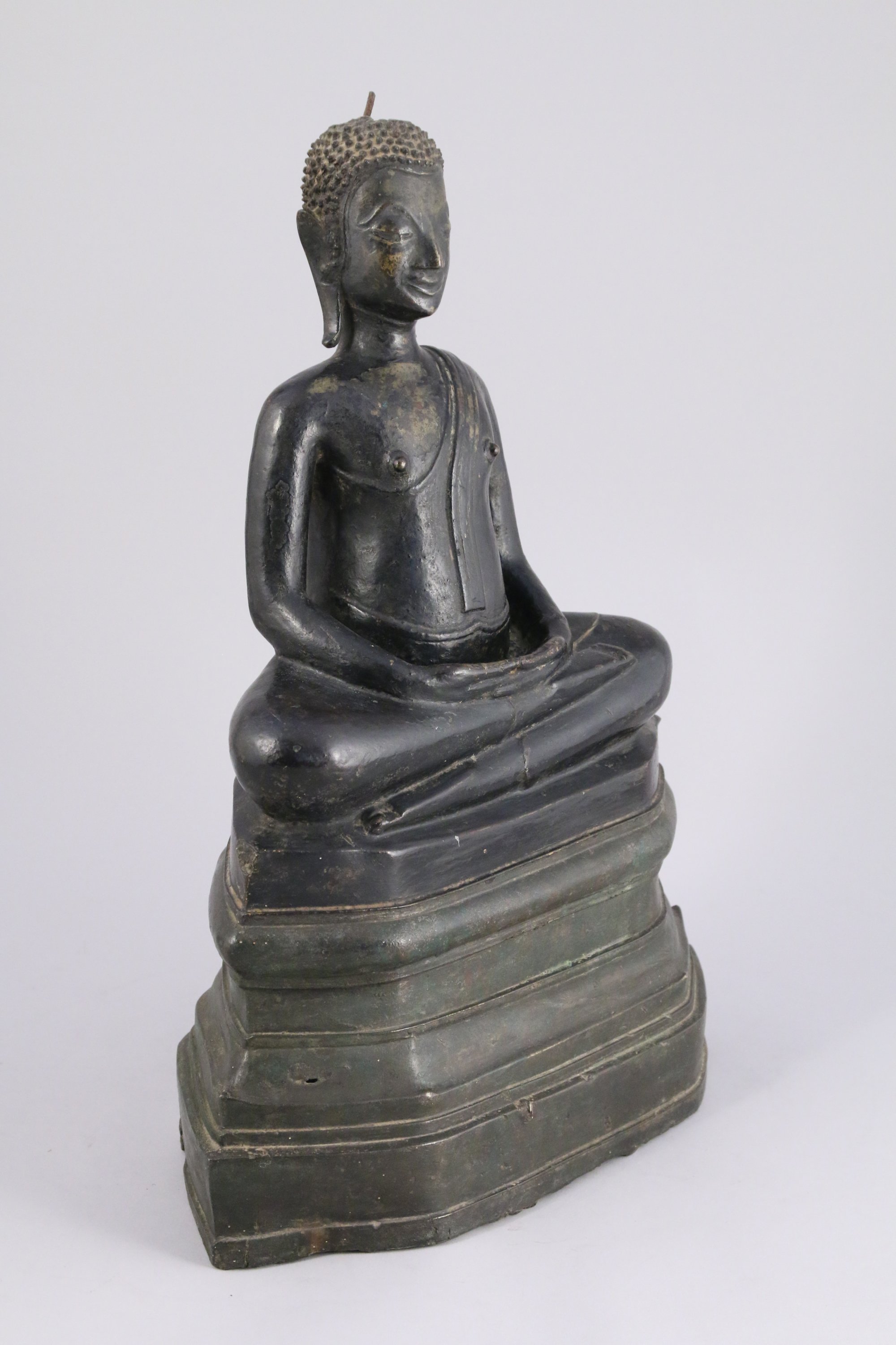 LAOS - XVIIIe s.-XIXe s. BOUDDHA en BRONZE à patine...