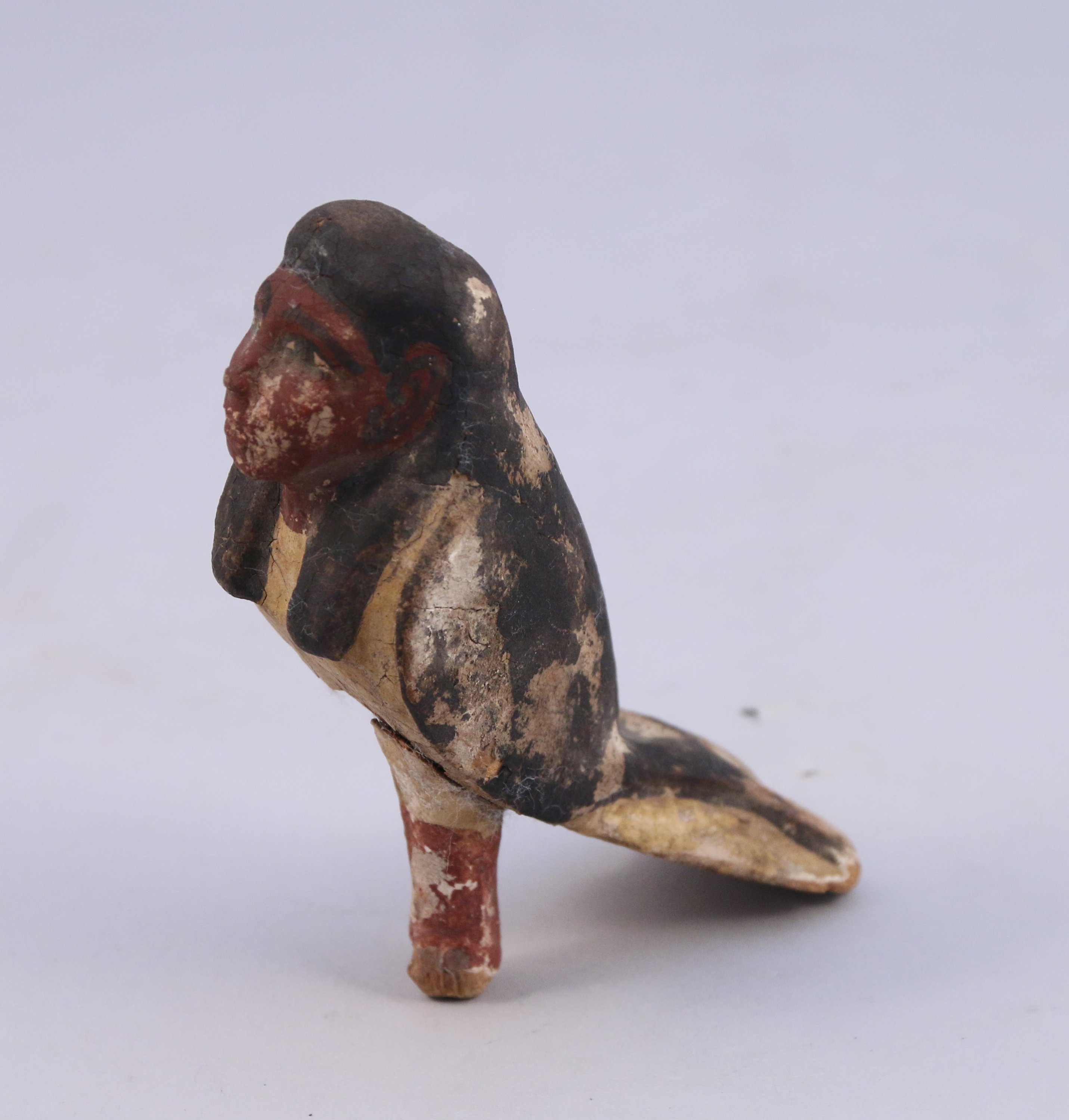 FIGURINE en bois polychrome de l’oiseau Ba, l’« âme du mort » égyptien.