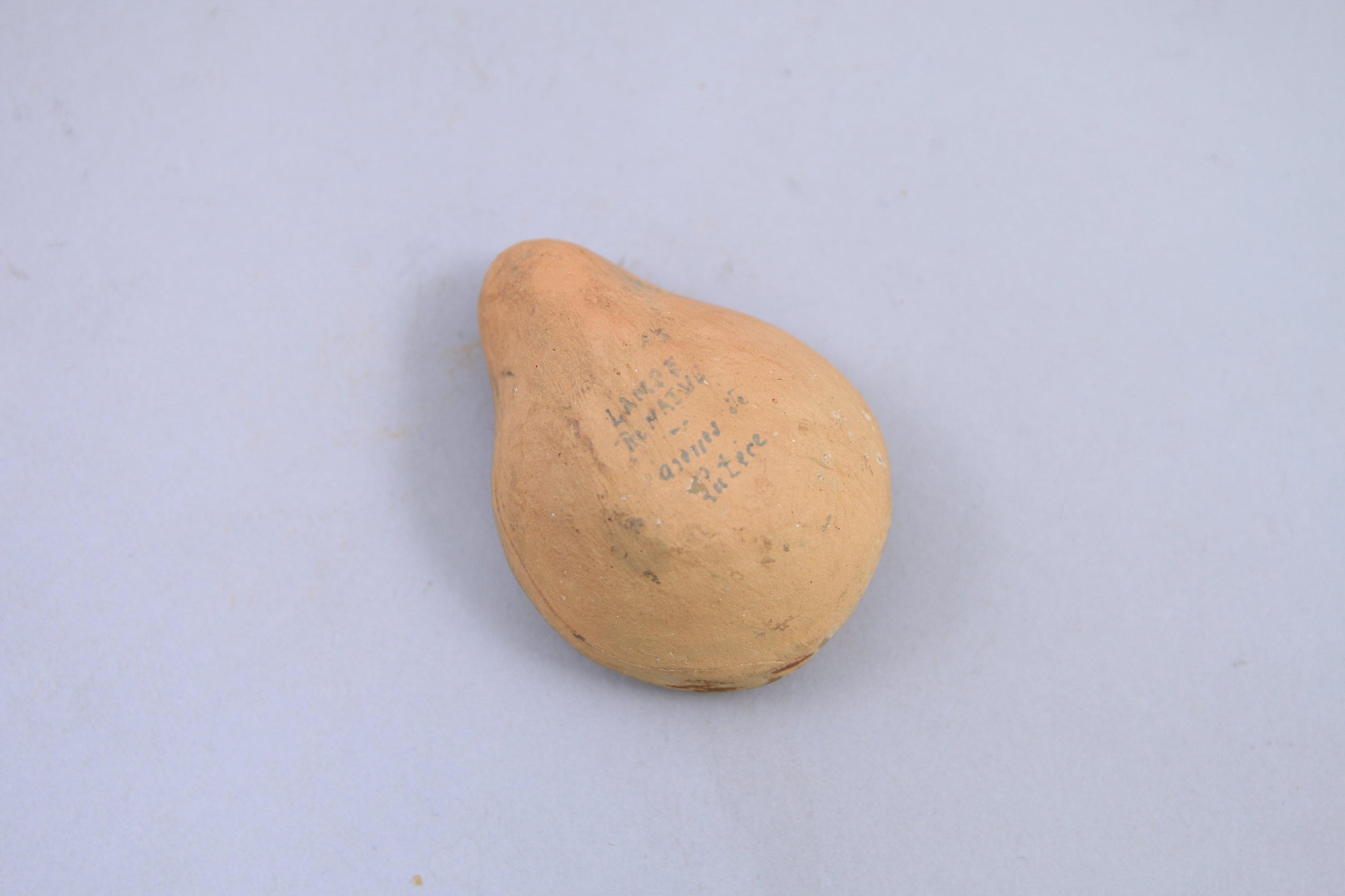 Petite LAMPE romaine en terre cuite. Inscription à l’encre au dos : « lampe romaine, arènes de Lutèce ».